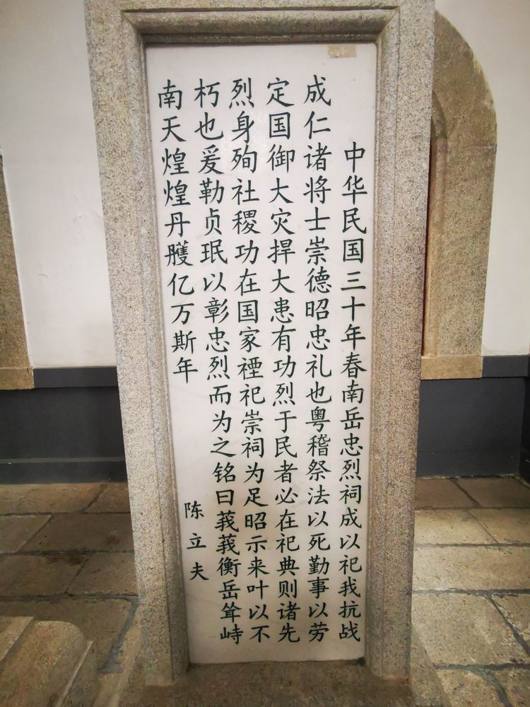 南岳忠烈祠是中国建筑最早、规模最大的抗日战争纪念地之一,也是抗日战争和世界反法西斯战争的重要纪念地之一。中华民族阵亡将士的总神位就设立于此。