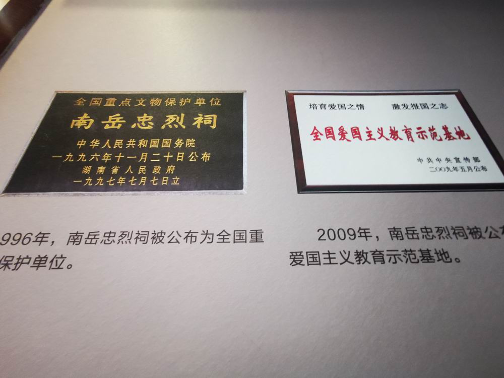 1996年,南岳忠烈祠被国务院列为全国重点文物保护单位。2009年,被中宣部公布为全国爱国主义教育示范基地。2016年12月,南岳忠烈祠被列入《全国红色旅游经典景区名录》。