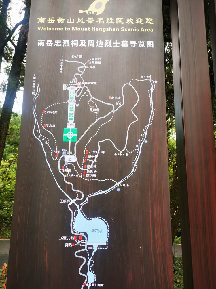 南岳忠烈祠,位于湖南省衡阳市南岳衡山香炉峰下方,距南岳古镇4公里处,南岳忠烈祠为纪念抗日阵亡将士而建。图为忠烈祠的导览图。