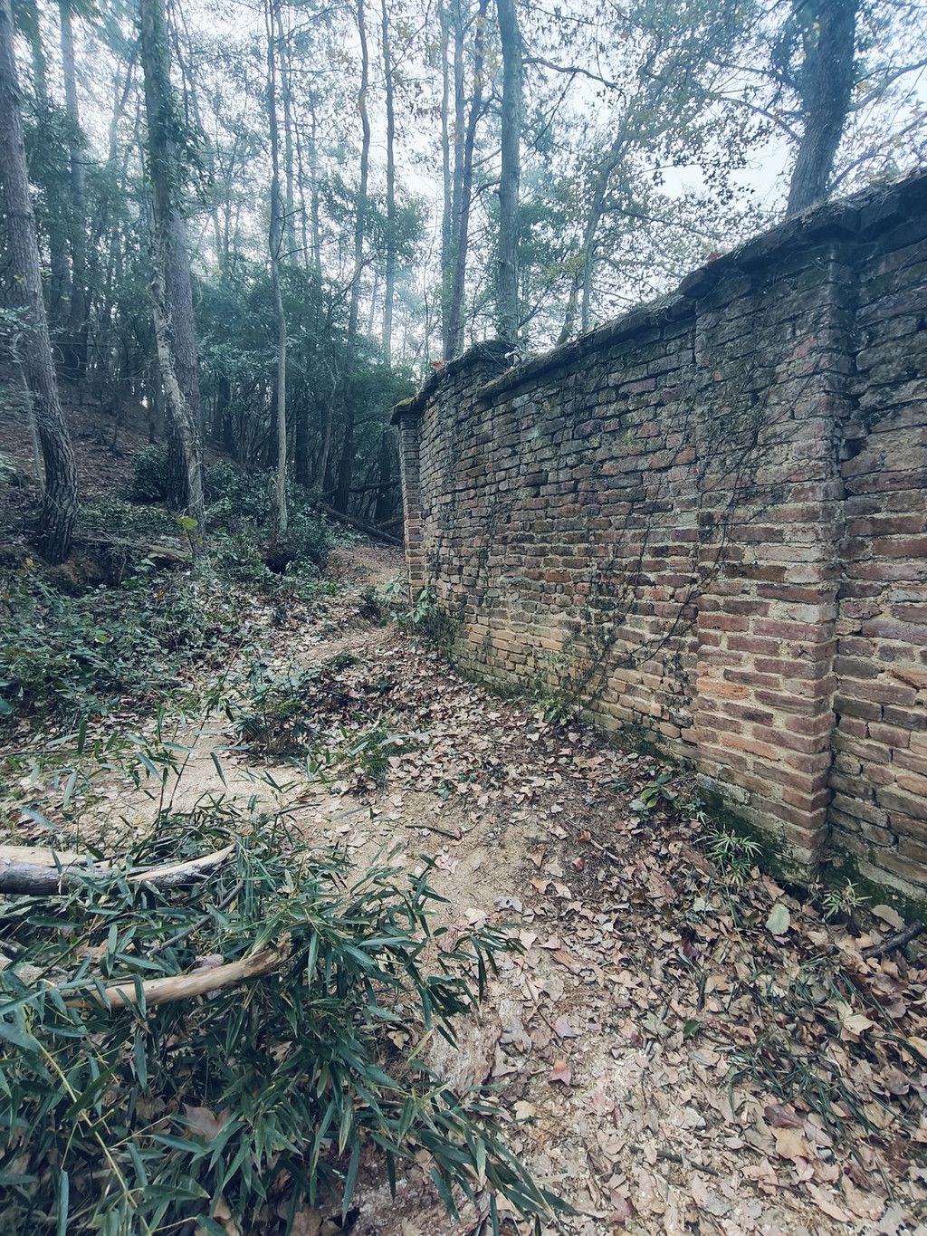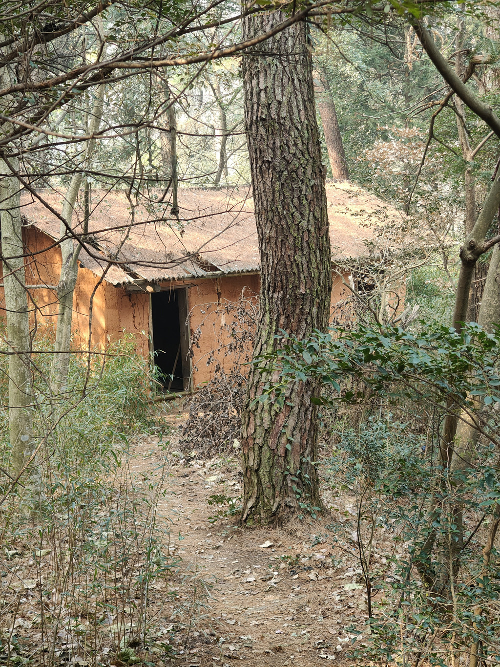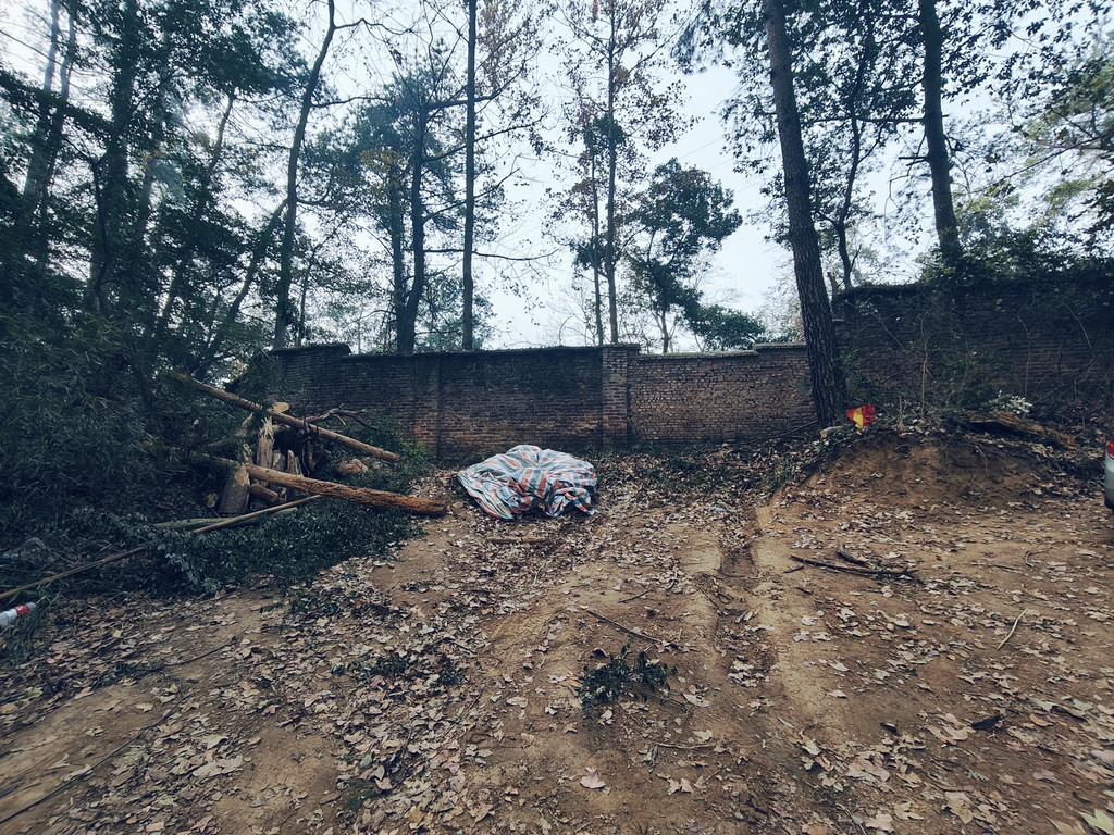 就这么一路徒步上坡,衡山或许历史成就了山林故事,但也成就了许多小路,不时就出现地图上没有的分岔路,一路就是走错回头重找再试的过程,路间经过一孤立废弃土房,墙壁抹着黄土,已荒废多时无人居住。