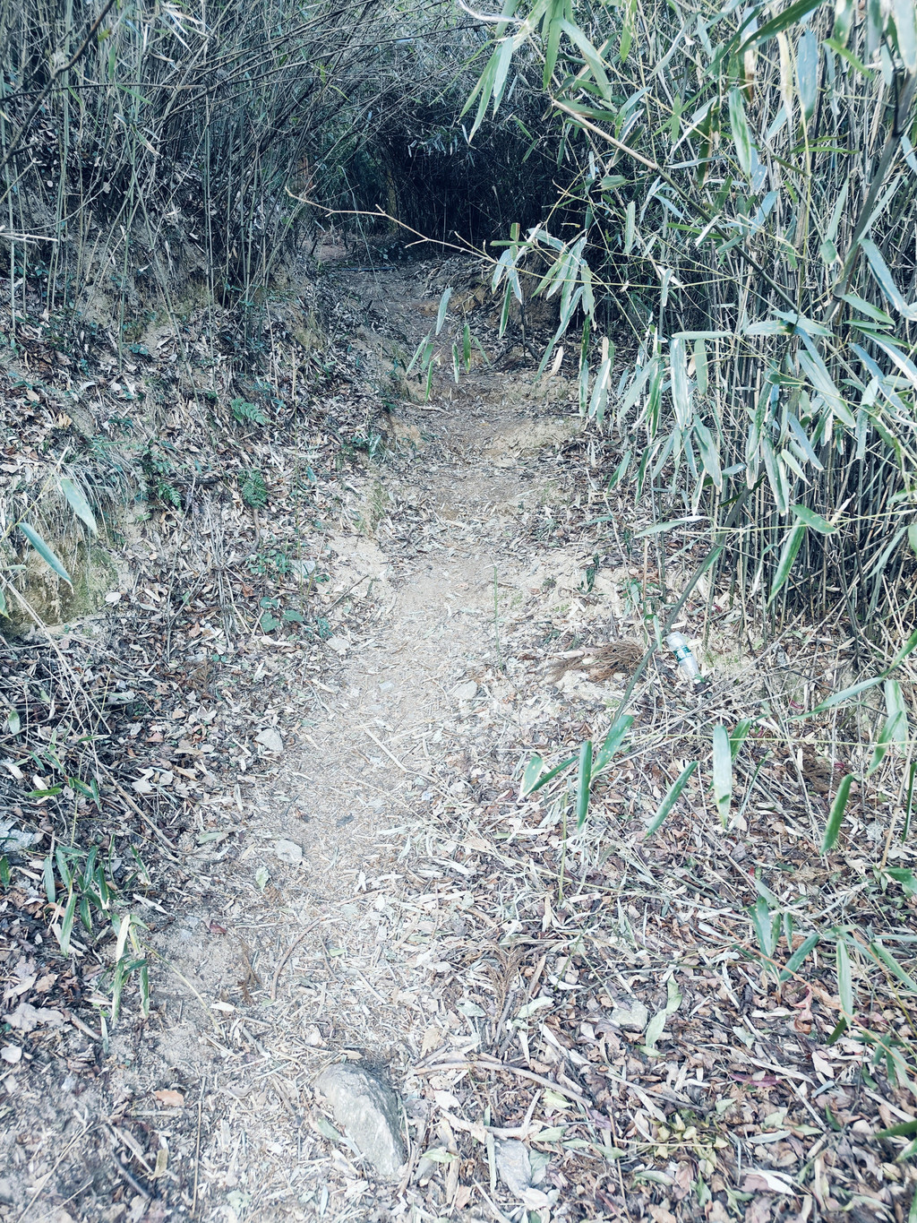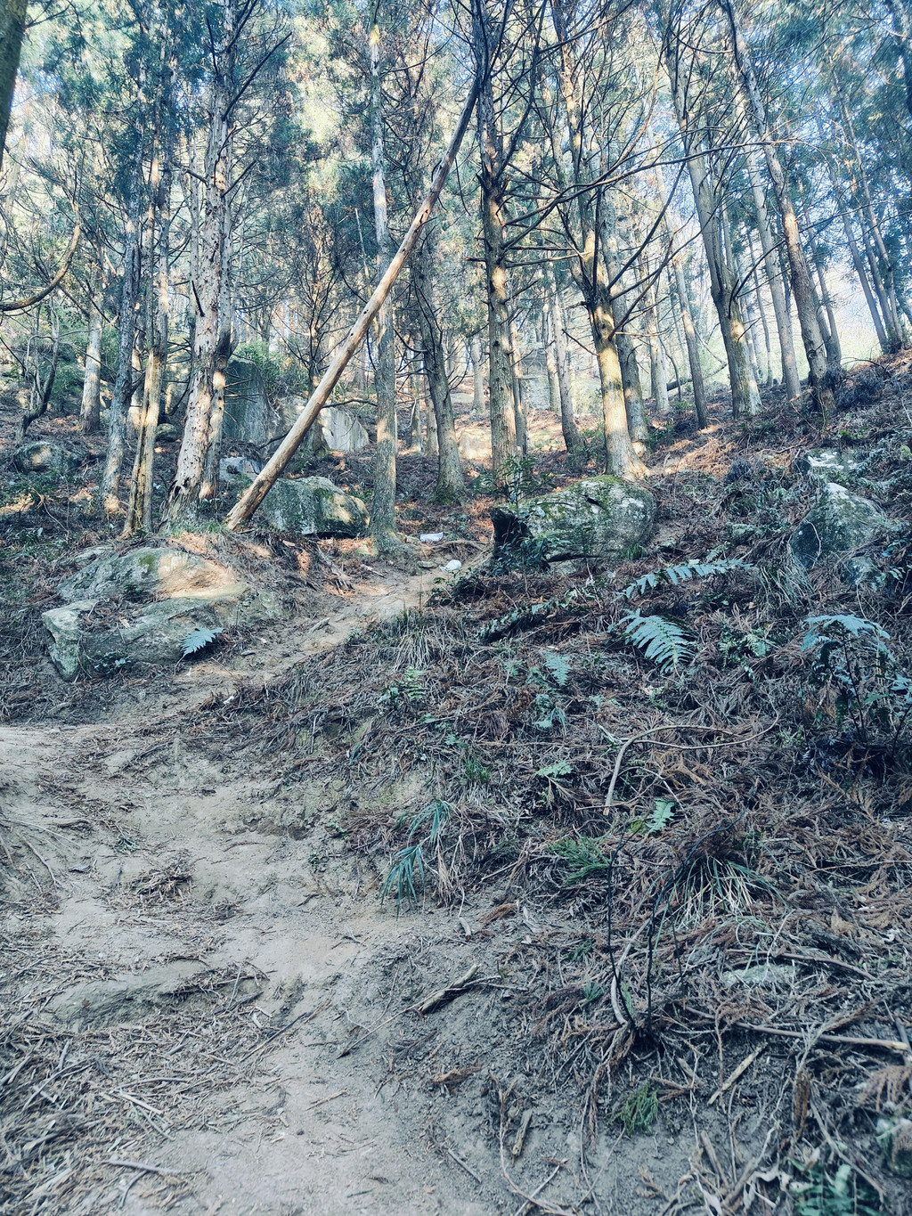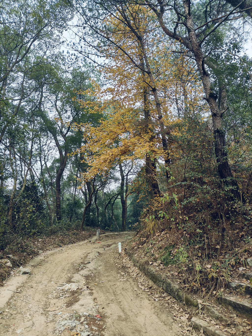 就这么一路徒步上坡,衡山或许历史成就了山林故事,但也成就了许多小路,不时就出现地图上没有的分岔路,一路就是走错回头重找再试的过程,路间经过一孤立废弃土房,墙壁抹着黄土,已荒废多时无人居住。