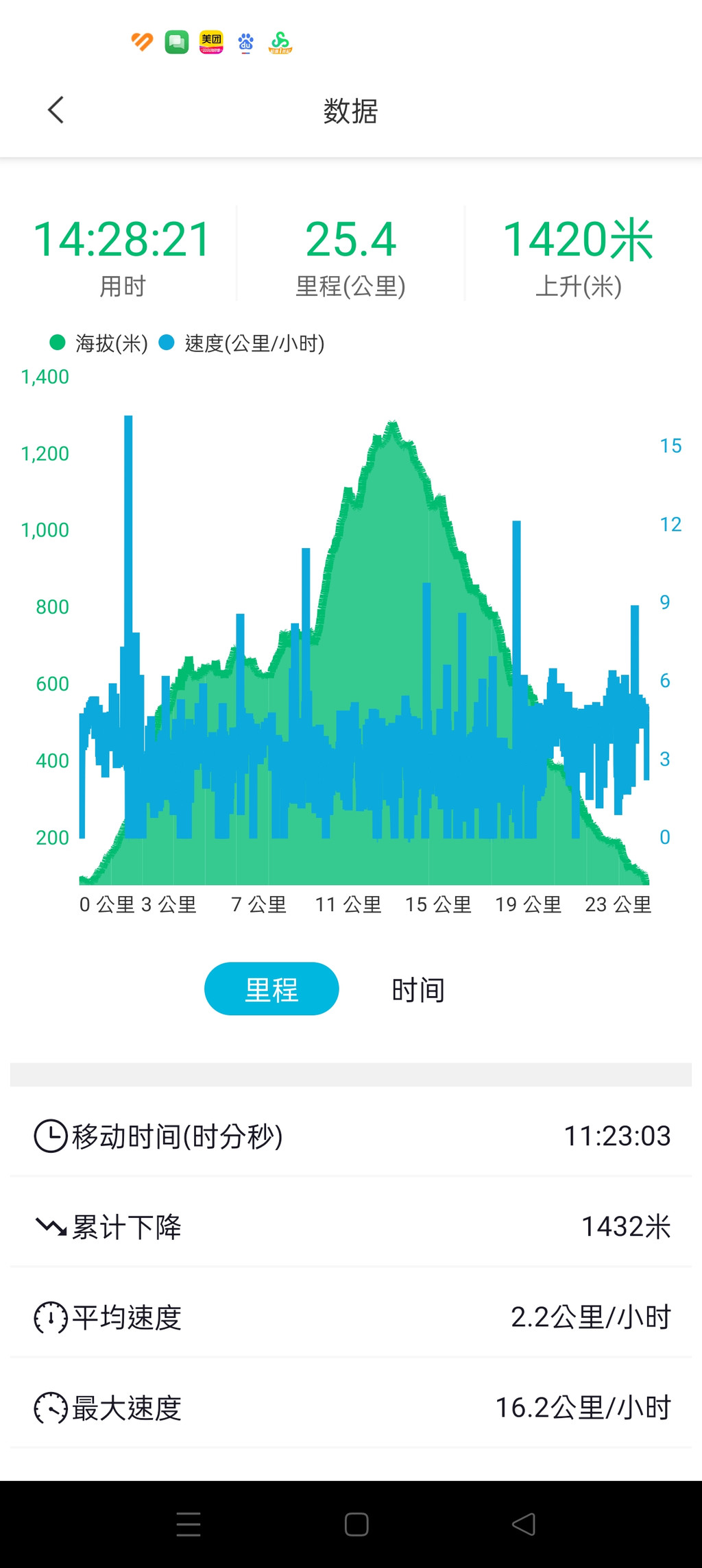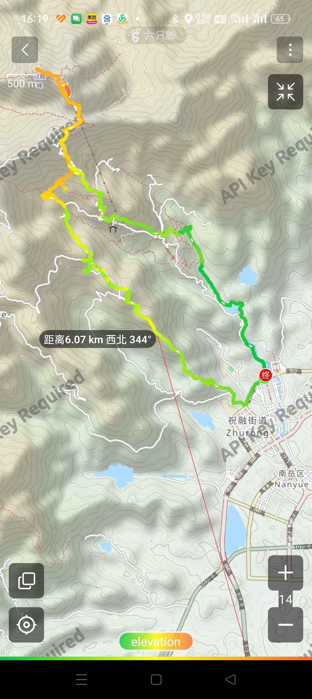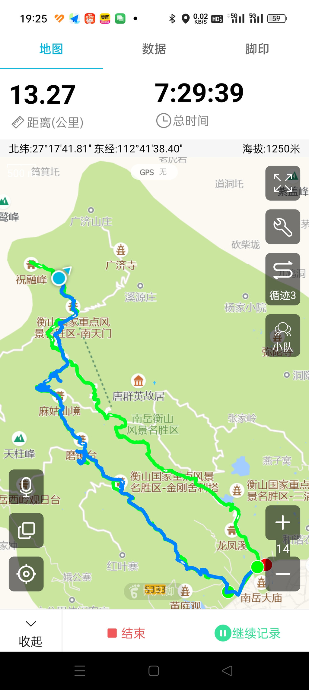 也算完成了这次衡山的全程徒步25公里,总用时14.5小时,总爬升1420m。