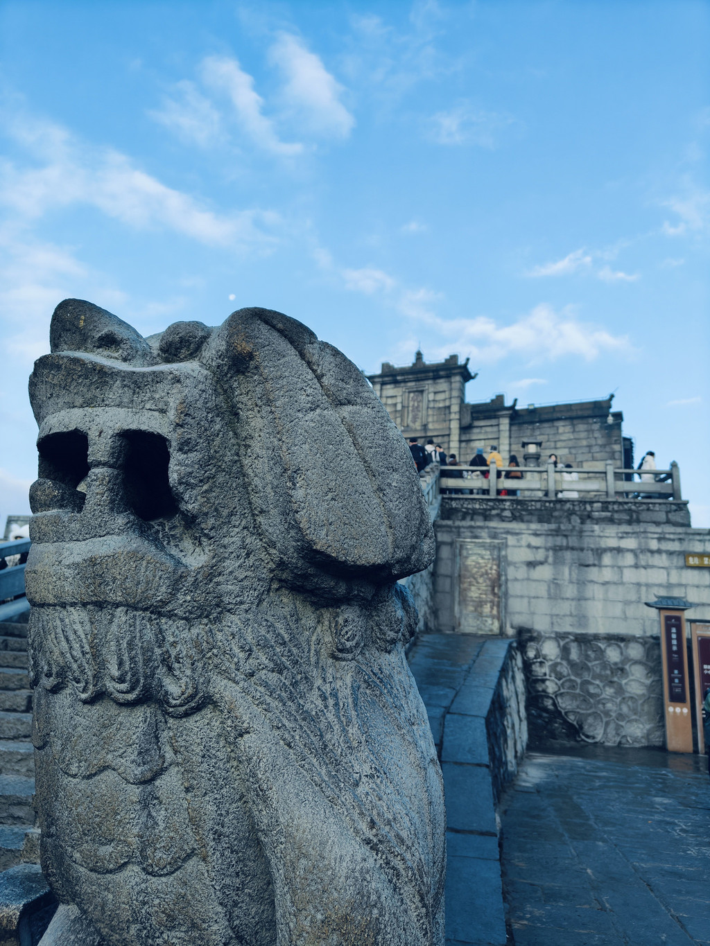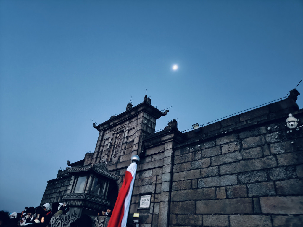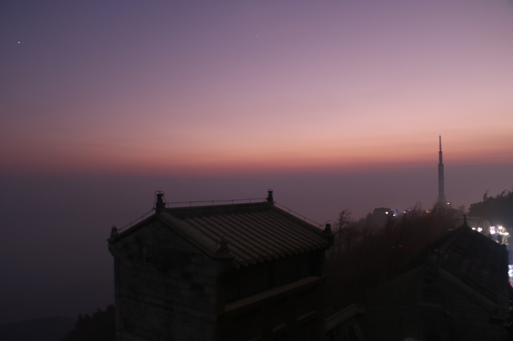 日出6:45,还得等1.5小时,正好风口处,躲在石栏杆内侧,还是冷的直哆嗦。好不容易等到6:45,结果下方云雾太重,没有传说中的金色蛋黄,拍了几张便收拾准备下山。