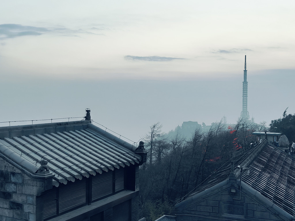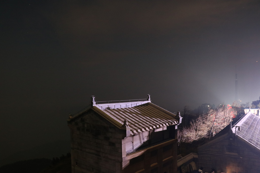沿途不少上山的人。离祝融峰顶不远,走一下就到了,可惜有云且景区光照做太好了反而看不到满天星斗。祝融殿架好脚架,时约五点,先冲了杯咖啡等暖暖身子等。
