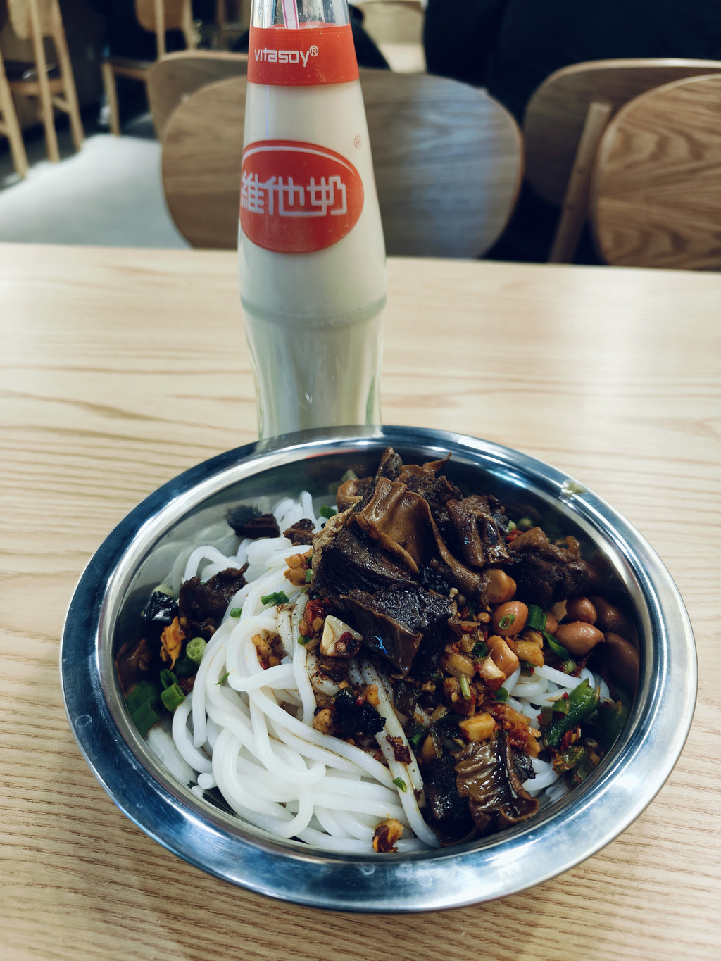 晚上跨年, 衡阳 市区满满都是等候跨年狂欢的人。酒店隔音不太好,整晚都是音乐爆击声,泡个澡舒缓这两天疲累后,再度出来觅食,看着 衡阳 到处都是滷粉广告,也好奇,便找了张记滷粉尝尝。下雨天加上跨年,滴滴叫半天没车,只好再走个两公里去吃,滷粉原来就是干拌的米粉,点了牛腩肉的,牛肉大块不柴,蛮有味道。