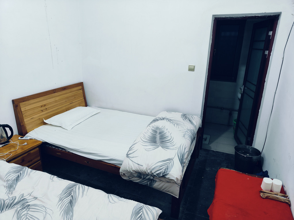 庙门已关,右旁有一小门可入,询问预定标间后,300元四人房,房间两张大床,没空调但有电热毯,且有浴室可洗热水澡。