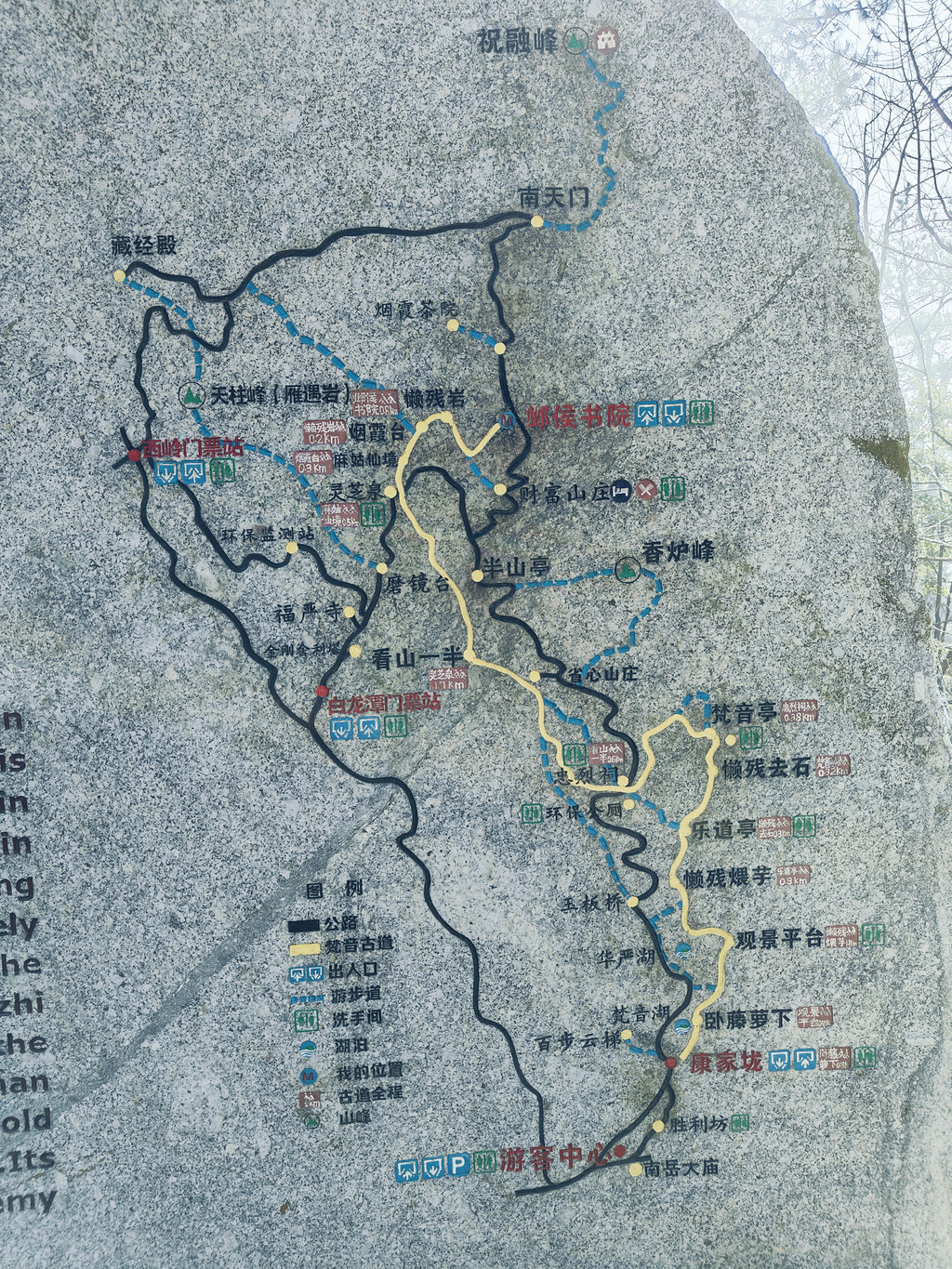 这次行程很紧凑,出机场直接叫滴滴到南岳游客中心售票处,约一小时车程抵达时已是十点多了,一开始顺着人流走到胜利门,但比对地图发现不是计画中的启登点,重新比对路线后往西岭方向走去,经过售票处时像志愿者打听一下路线,志愿者讶异的说没什么人自那上,但还是说了往前走到红绿灯再右转,途中也会有检票售票点。想说有检票售票处那应该有补给点,就一路走去也没想先买水装水带,但这是最大的一个错误。