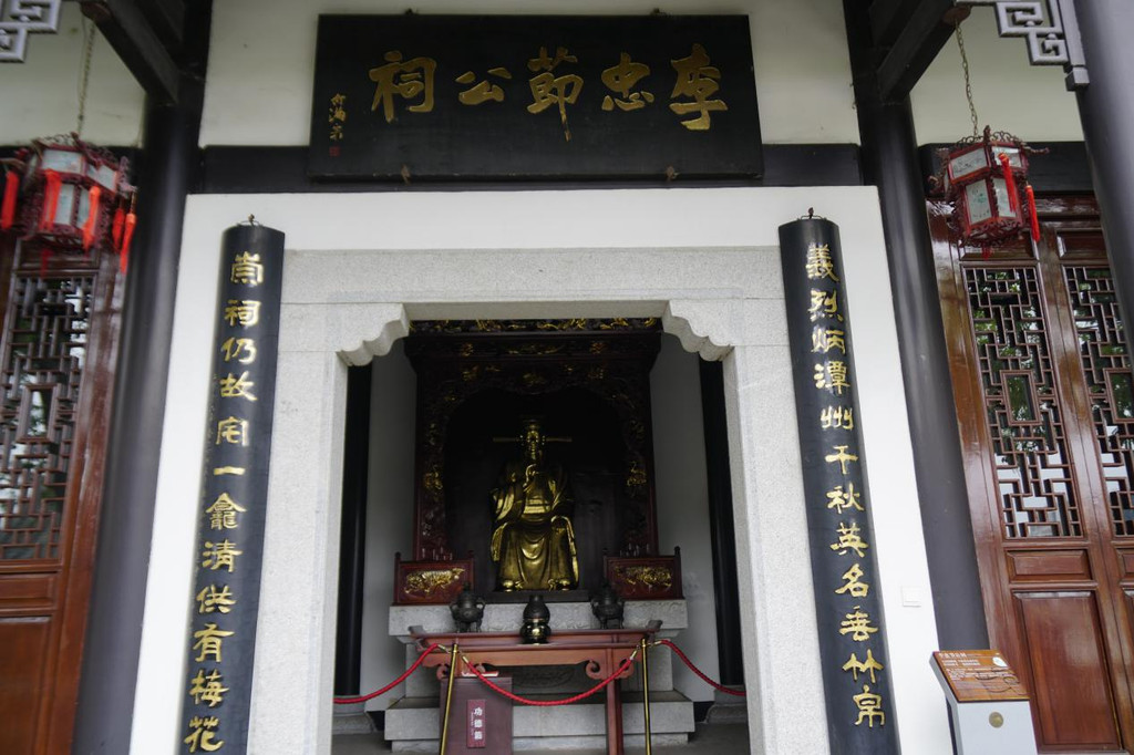 李忠节公名李芾,南宋衡州(衡阳古称)人。南宋德佑元年,元军来犯,李芾临危受命,任衡州知州兼湖南安抚使,率军民抗击元军三月有余。城破,于除夕夜手书“尽忠”为誓,举家殉国。元代在李芾故宅建李忠节公祠,清代移建石鼓山。