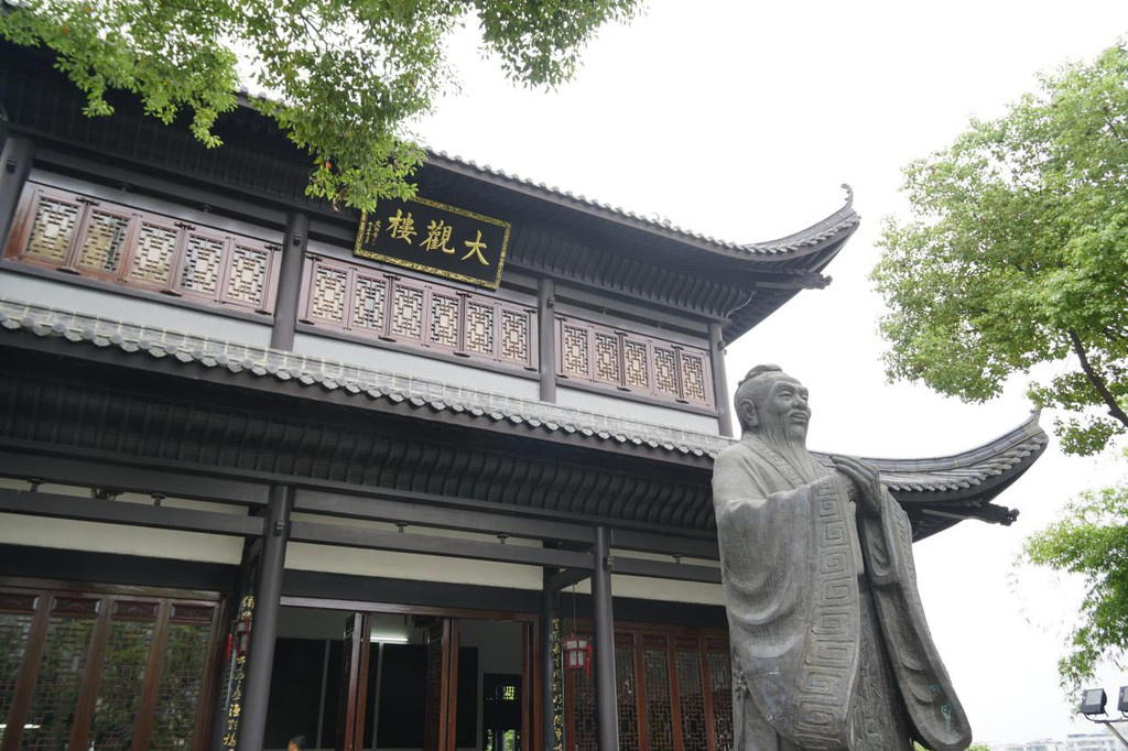 孔像后方即“大观楼”。大观楼始建于明万历年末,“大观”寓意登楼揽胜,心载天下。楼下讲堂,楼上藏书阁。