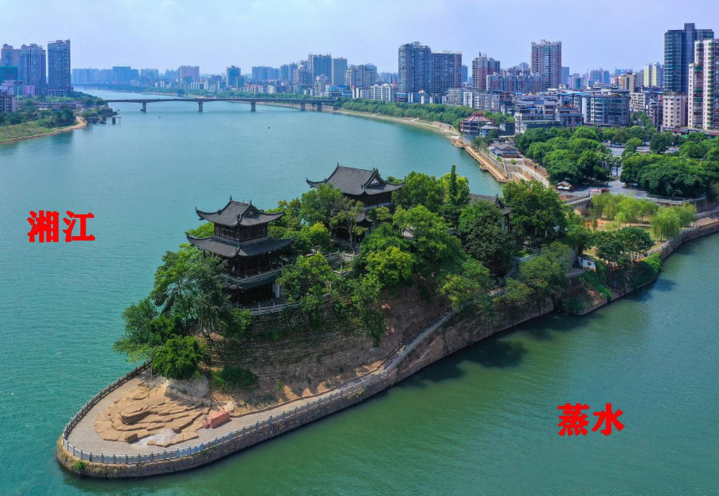 大观楼后方就是合江亭,蒸水、湘江汇流眼前。曾国藩、彭玉麟在衡州创建湘军水师曾在这一带的水面上练兵。登亭远眺,可以看到来雁塔,此塔为镇江、导航塔。