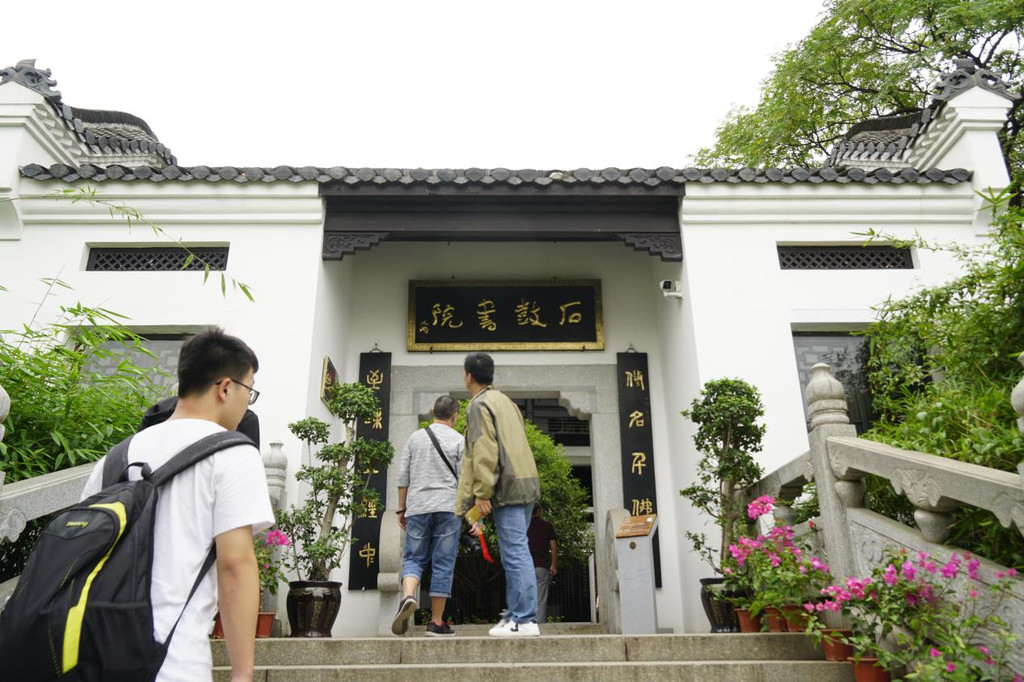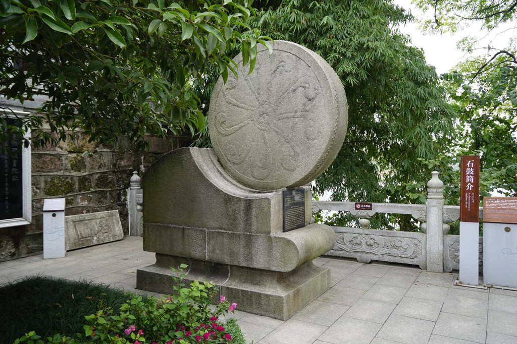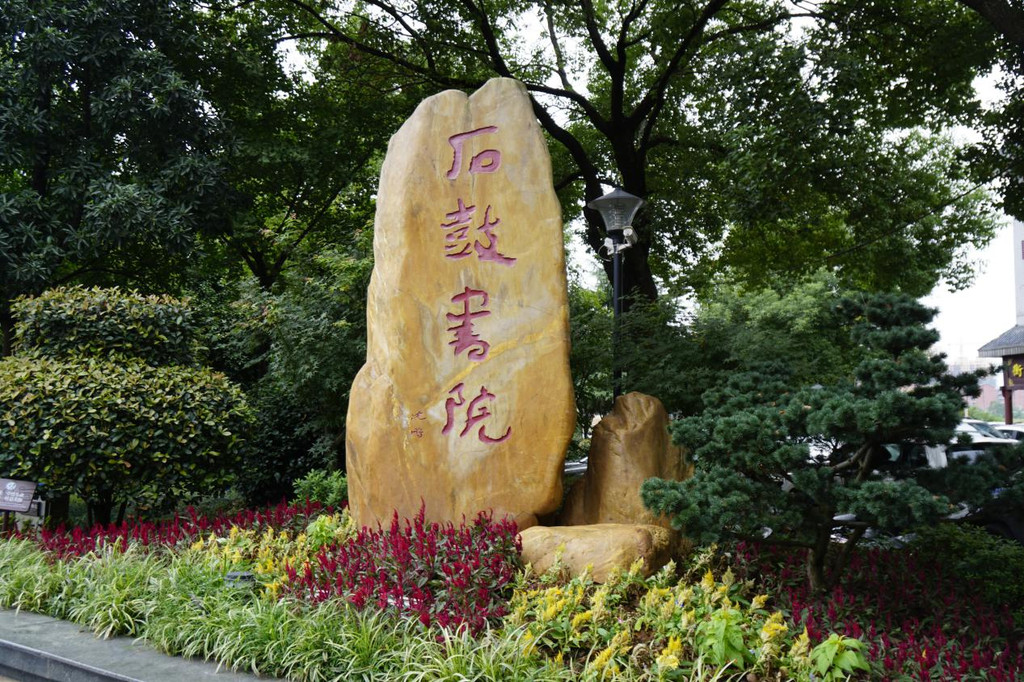 山门两侧门联是“修名千佛上,至味五经中”,进山门即见直径1.6米的大石鼓,1965年建设石鼓公园时凿制。两侧四间廊房是书舍,是生徒自修、休憩场所,又称号舍、书斋。