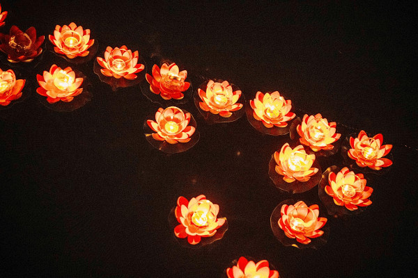 在南岳里品尝美食,感受民俗文化。特别是衡佑码头上独一无二的莲花灯祈福环节,南台寺金刚舍利塔佛光映照在金月湖面上,游客们将心愿寄托于莲花灯中,轻轻放入金月湖,祈愿平安喜乐。所求皆所愿,所愿皆所得。