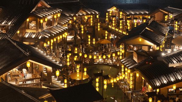 在南岳里的设计布局上,设计团队深入挖掘南岳文化内涵,依托南岳在地文化以及独一无二的民居风貌,将还原“古风”市集,营造一种身临古时瓦肆的繁盛景象。共设计了八大沉浸式体验场景,包括“一街、一岛、一宴、一民宿;一茶、一野、一戏、一码头”,每一场景都深入挖掘南岳文化底蕴,展现独特的庙会风情。