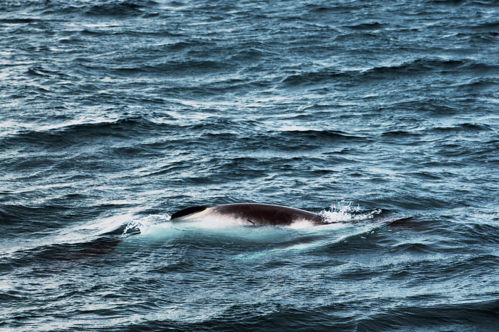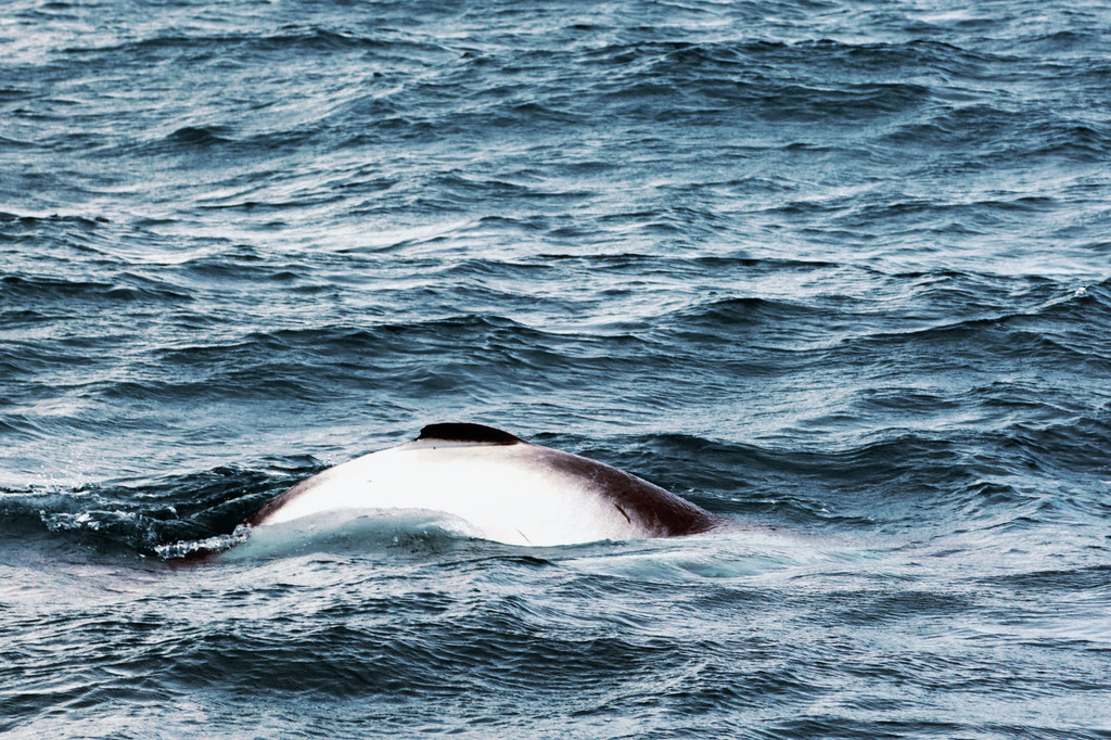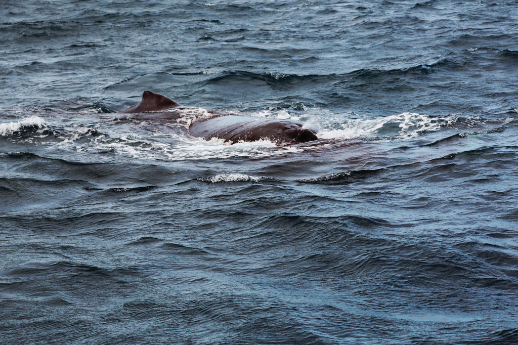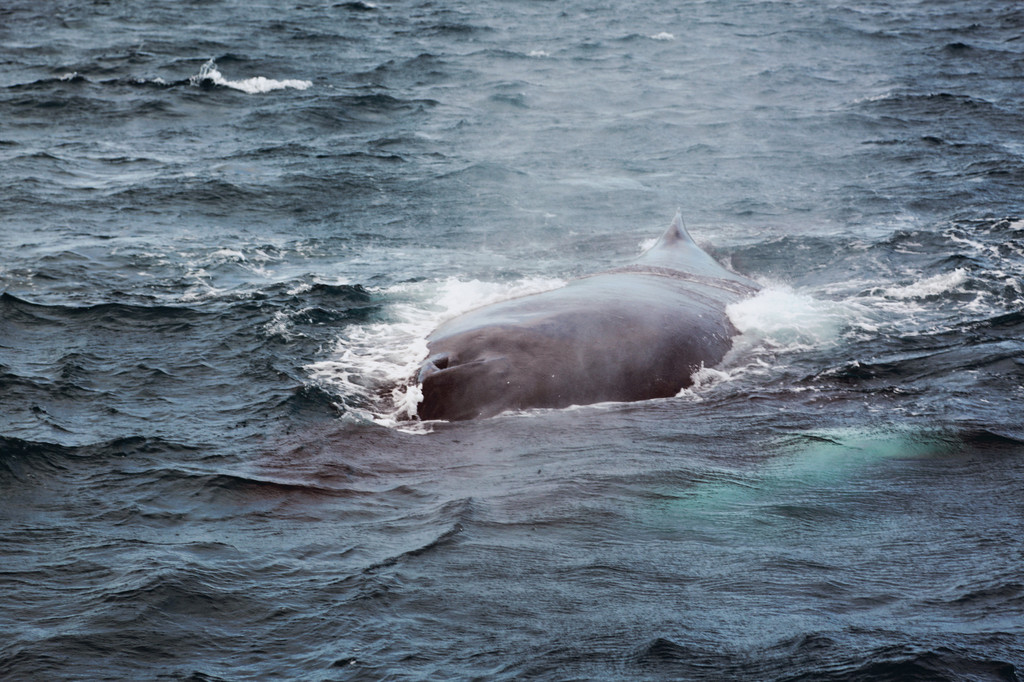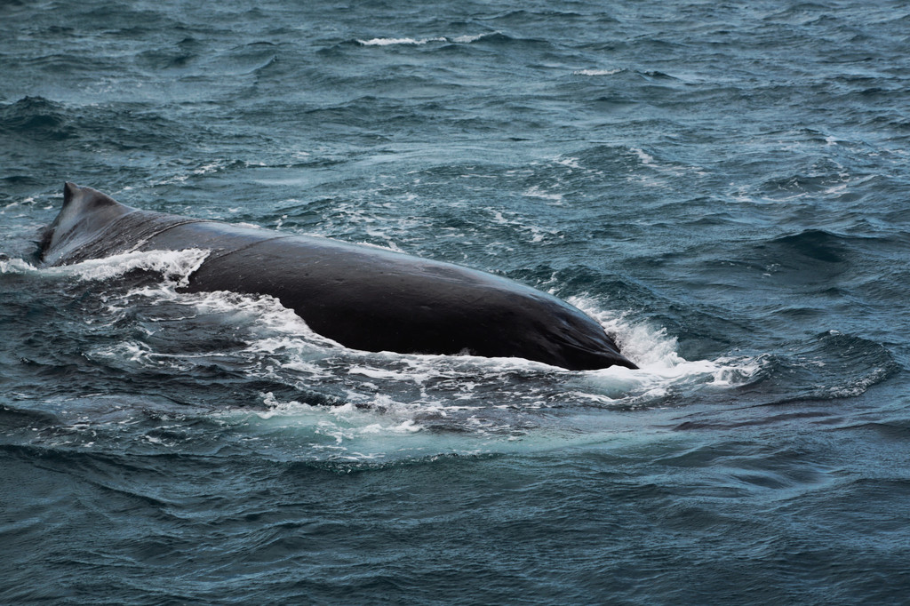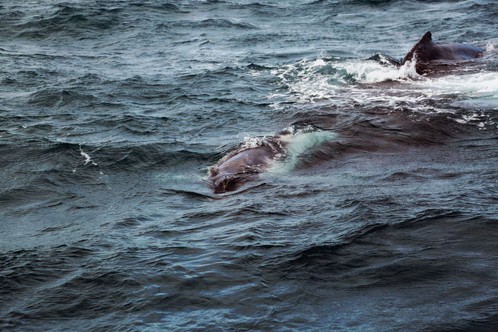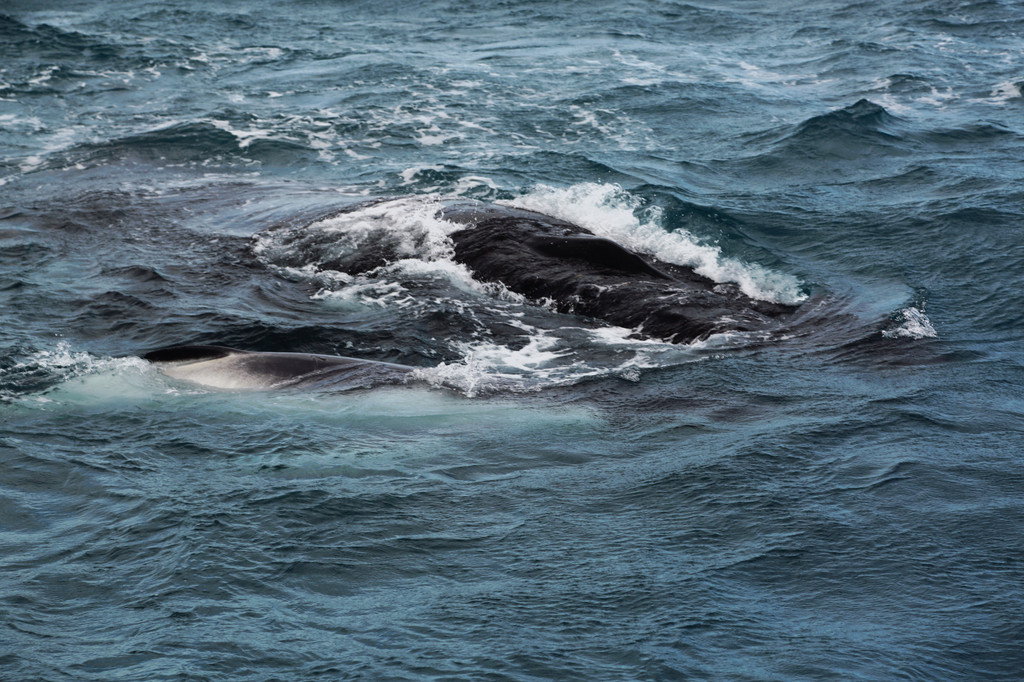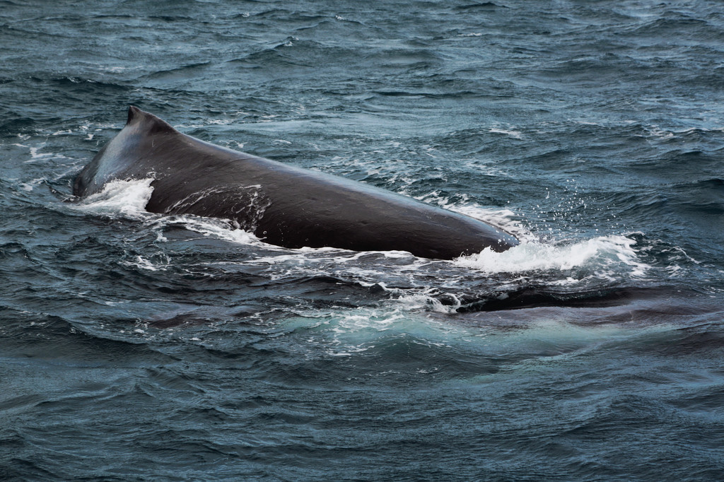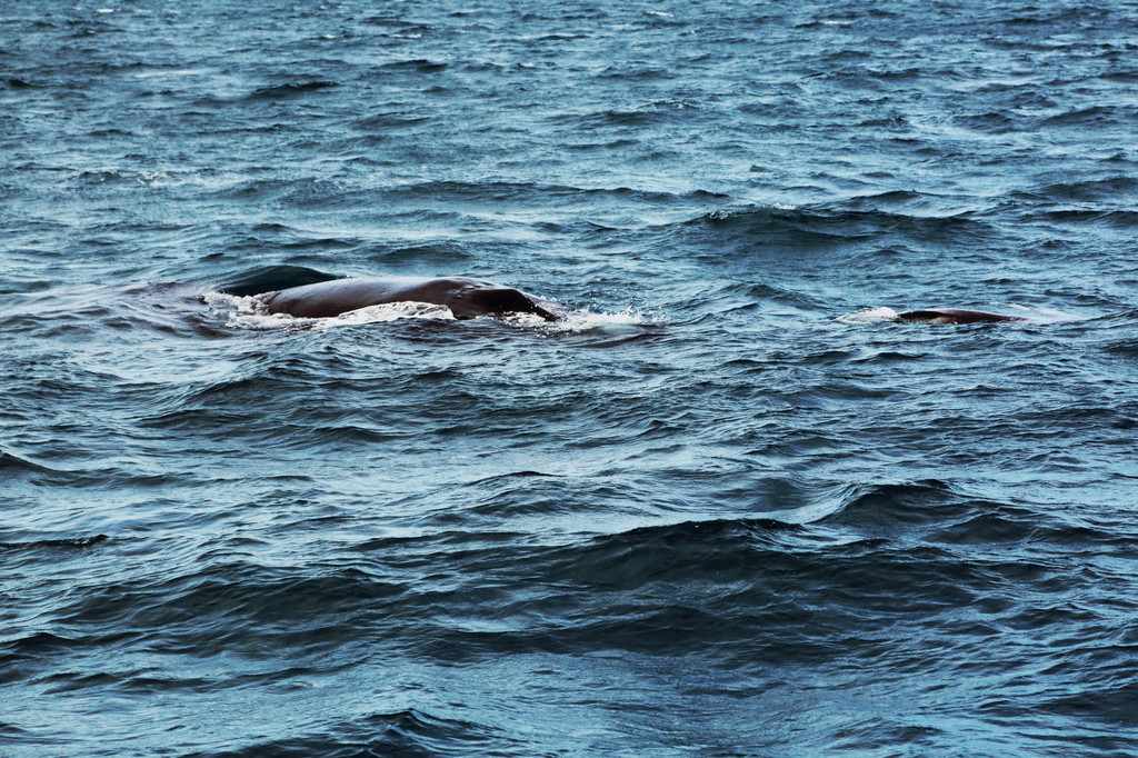 以为会与鲸鱼无缘,结果,见着了一对又一对鲸鱼母子,也有单只没带孩子的,最幸运的,是有一对鲸鱼母子围着船转了一圈半,船上的人越是对它们欢呼挥手,它们越是来劲,在船边转得越欢。终于知道为什么人们又称其为“海中人来疯”了。