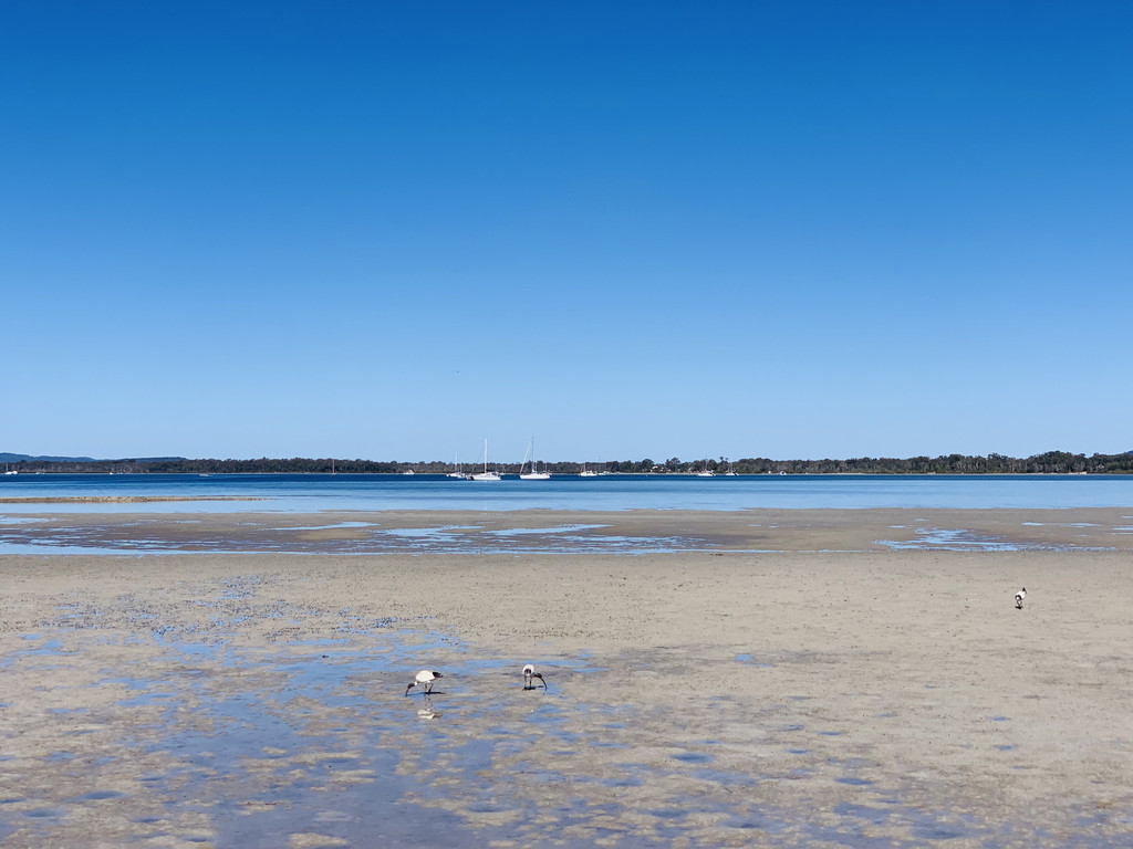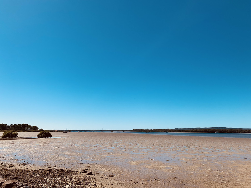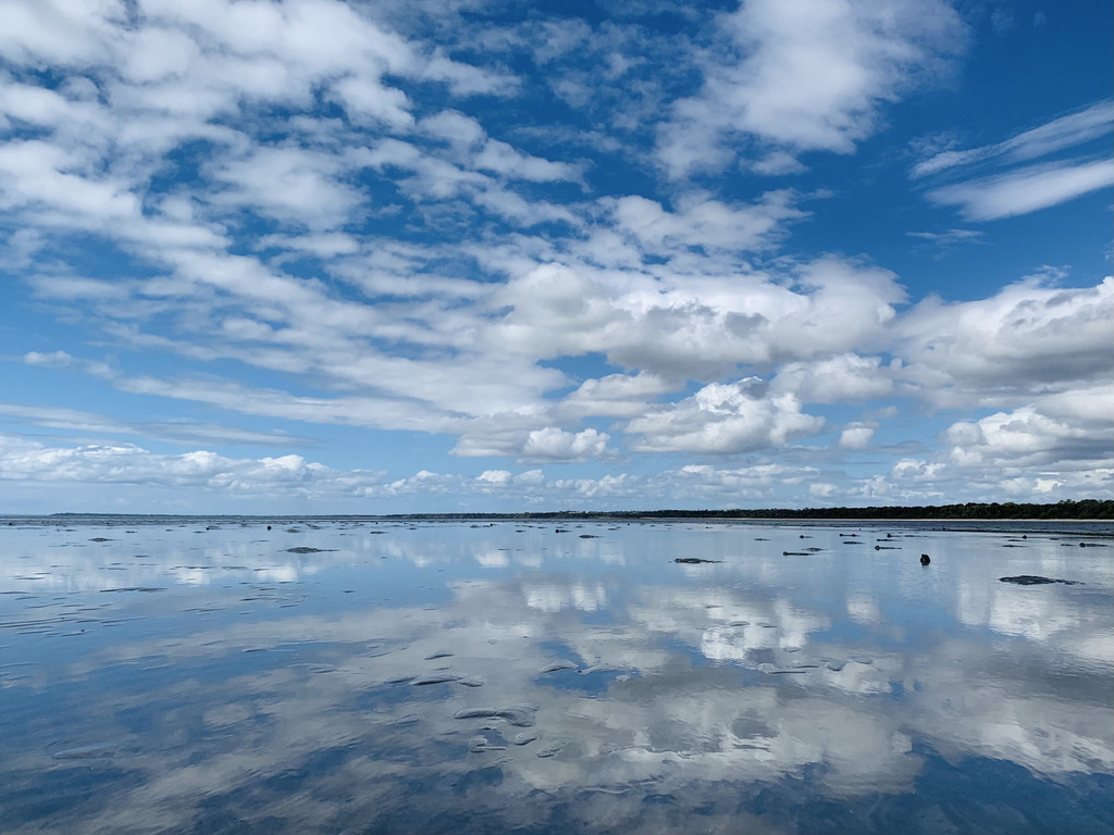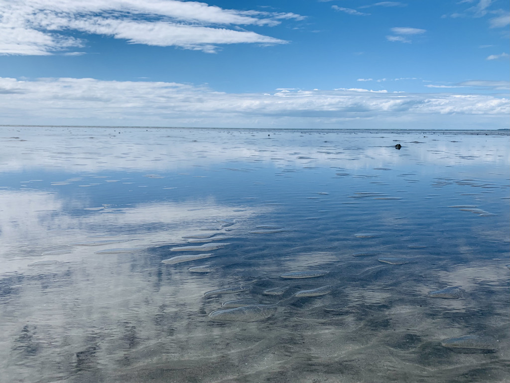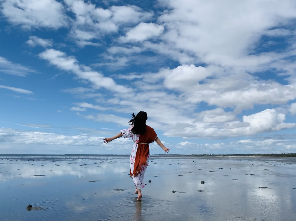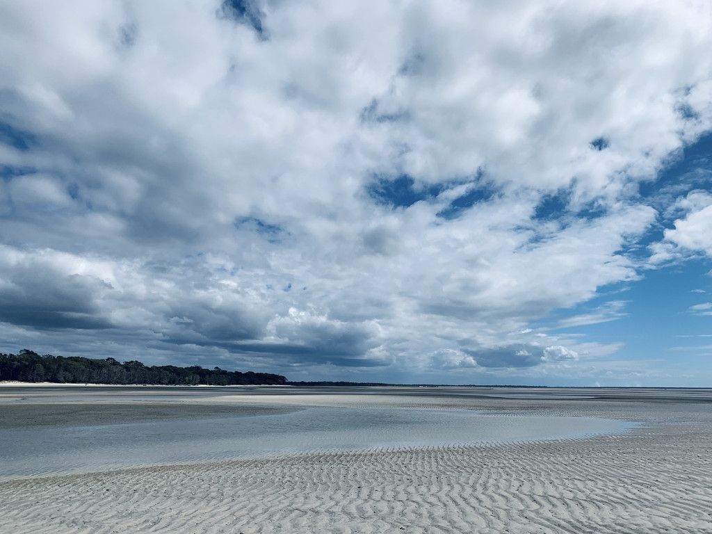 后来又去了Toogoom,这里距Hervey Bay 二十来公里,是这附近最爱之处,当天来时潮水已退至最低处,至平的海床,走了很远很远一直是沙滩,到及海水处,仍然平坦得只没过脚面,海水倒映着云海,甚是好看。
