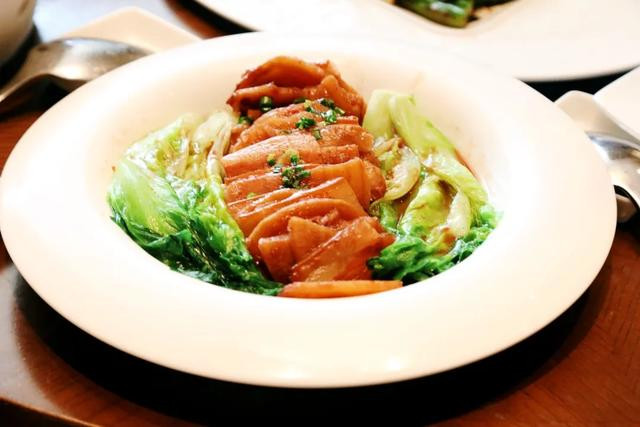 家乡粉葛扣肉,选用的是韶关曲江区著名的大塘粉葛,无渣、质鲜,粉葛厚实的口感与五花肉的软滑结合在一起,吃起来并不会觉得油腻。
