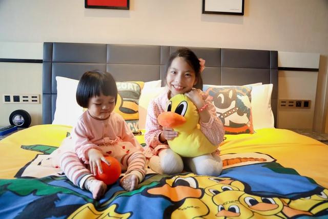 小黄鸭主题床罩、公仔、地毯、儿童帐篷等,为小朋友们打造出一个欢乐世界,就连浴室也贴心准备了儿童专用的浴袍、浴巾等各种儿童洗漱用品。