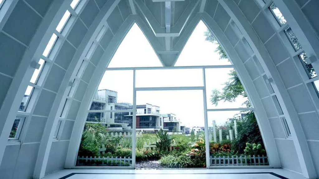 酒店被绿荫环绕,大理石铺砌的漫步小径蜿蜒其中,超1000 平方米的户外草坪及玻璃教堂便是孩子们追逐嬉闹的绝佳场所。