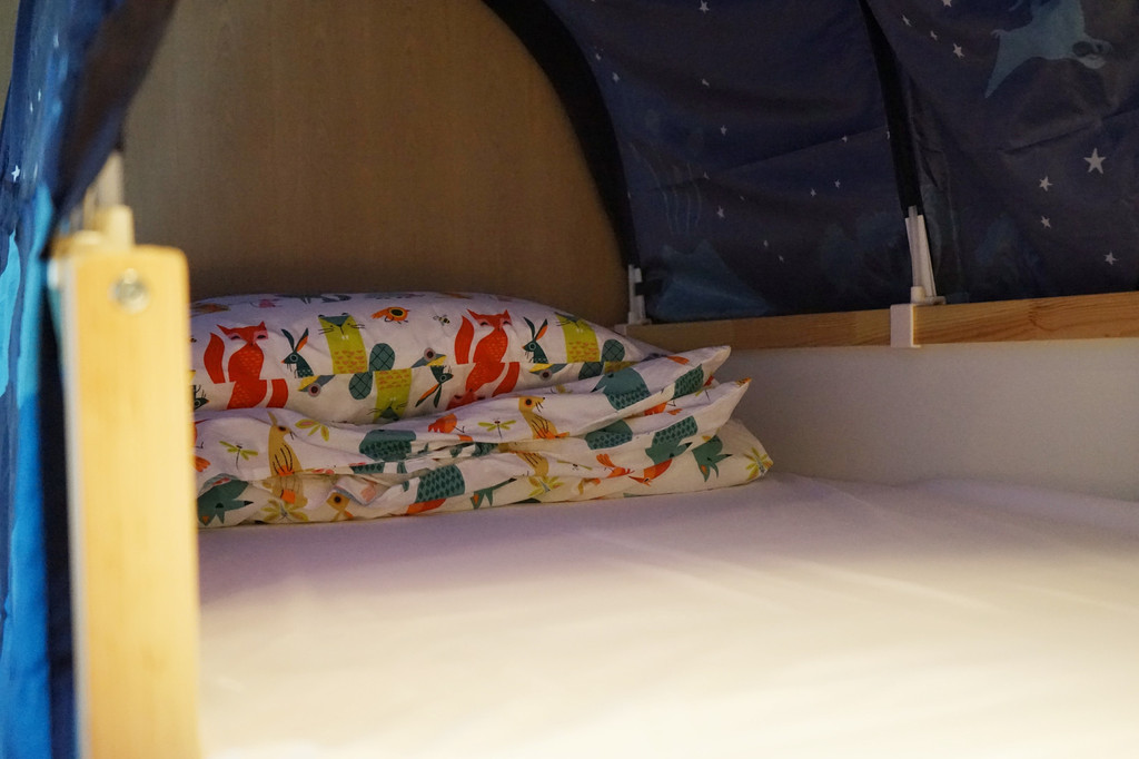 房间内设有独具特色的福朋舒适之床,而专为孩子设计的帐篷式木床也很安全厚实。