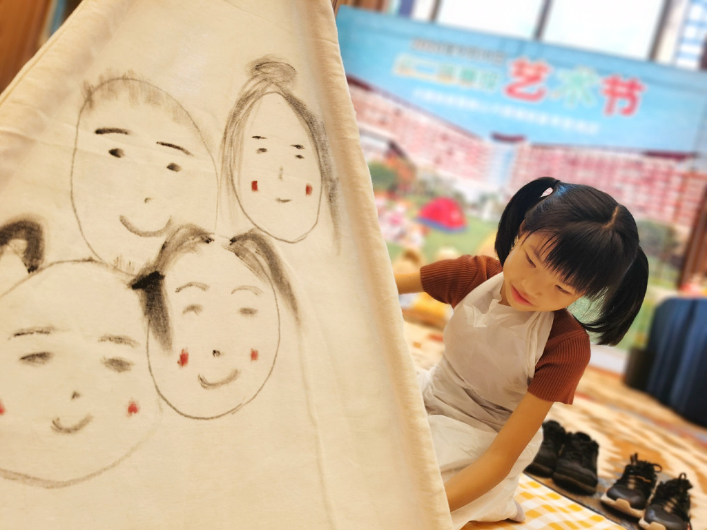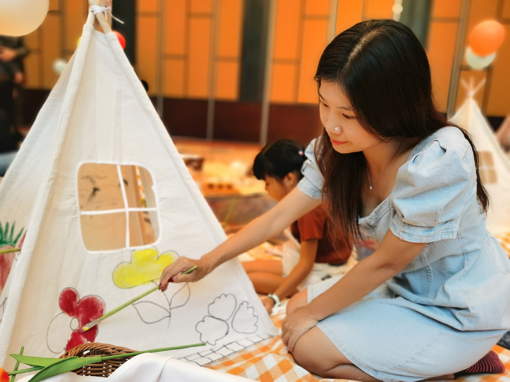 伴着山水,花花带着暴走宝贝们在美术导师指导下进行了帐篷绘画 DIY 学习和自由创作。