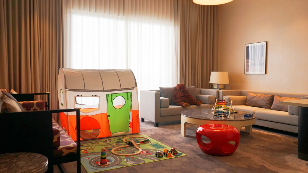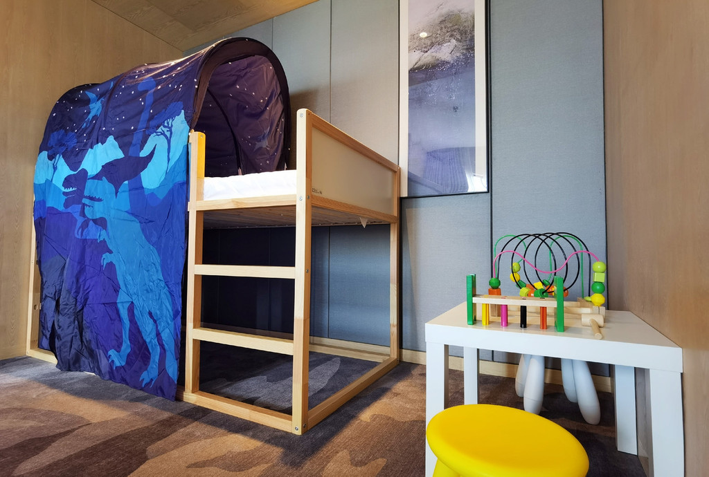 考虑亲子房的安全要求,酒店贴心地在房间家具上贴了防撞胶,给个大拇指赞赞赞~~