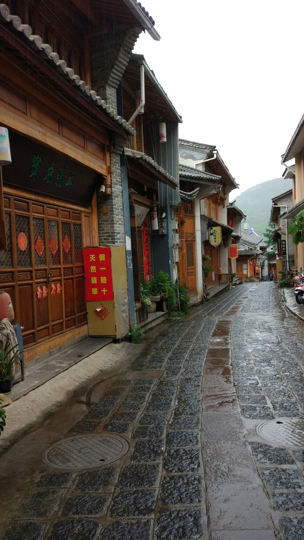 这几天雨一直淅淅沥沥的下着,在路边找到汽车站,直奔古城里。真如大家所说,古城有些让人失望,没有丽江的小资和秀美也没有和顺的古朴和雅致,仅仅白色描画的房子有些自己的特点。粗粗的逛逛,坐汽车打道回府。回去的路上搜到一家本地很大很有特色的餐馆,心情大好。