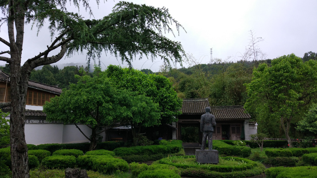 古镇湖景是游玩的最好去处。出小巷的右手方向,一排排民俗纪念馆之后就到了湿地公园。野鸭湖与湿地公园相连。湖的两岸分别是小山、徒步栈道和纪念馆。依山傍湖走到栈道的尽头,又转到湖的对岸,艾思齐的纪念馆在小山坡的最高处,隐蔽在蔟簇竹林里,普通的灰墙翘檐并不是很气派。中心花园被一圈带走廊的居所包围,院墙背靠着小山。学者、战士、诚实的人是毛主席给与艾思齐的评价。小镇有寸、刘、李、尹、贾、张、钏、杨八大宗族姓氏,哲学家艾思齐为李氏宗族。从纪念馆的小山坡往下走就是小镇的大广场。坐电瓶车路经刘氏宗祠后可以回到古镇中心区。中心区建造在山坡上,一条环形路把小镇连接起来。山坡上最安静的地方是学校,体现出对教育的重视。小镇的第一顿餐点了特色菜大救驾,其实就是大杂烩,本以为腾冲的美食都不过如此,晚上,做足了功课,找到了人气特旺的妈妈的味道,才体会到不同餐馆和厨艺的区别太大了。后来又品尝了另一家的特色土锅,感觉才真正找对了餐厅。早餐的餐厅虽很简陋,洱丝却是独特的,细细像毛线一样,有点粘,口感好很入味。一直很想念那个味道。吃过晚饭,小镇伴随着细雨进入休眠时期,一下子街道就被雨水冲刷的安安静静。雨滴坠落在伞上,清晨,店铺悄悄的打开铺门,又是新的一天。