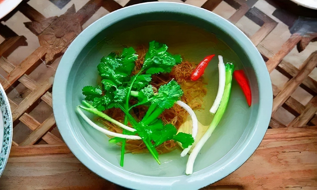“头脑”是和顺特色小吃,由晾干的糯米糍粑片、煎好的荷包蛋和红糖甜酒水制成,加上肉丝、蛋丝、豆腐丝等,滋味咸甜。过去和顺人在“走夷方”之前都要吃一碗“头脑”,寓意聪明伶俐,有头有脑。“头脑”在四大古典名著之一的《水浒传》中就出现过,这也证明了和顺饮食和中原饮食的渊源。