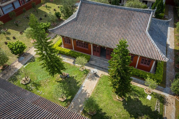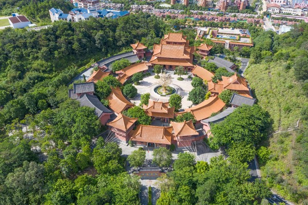 福源寺以释迦牟尼金身端坐金菩提树下为核心,大雄宝殿、观音殿等依次环绕,呈对称圆形,寓意佛教诸事圆满之意。