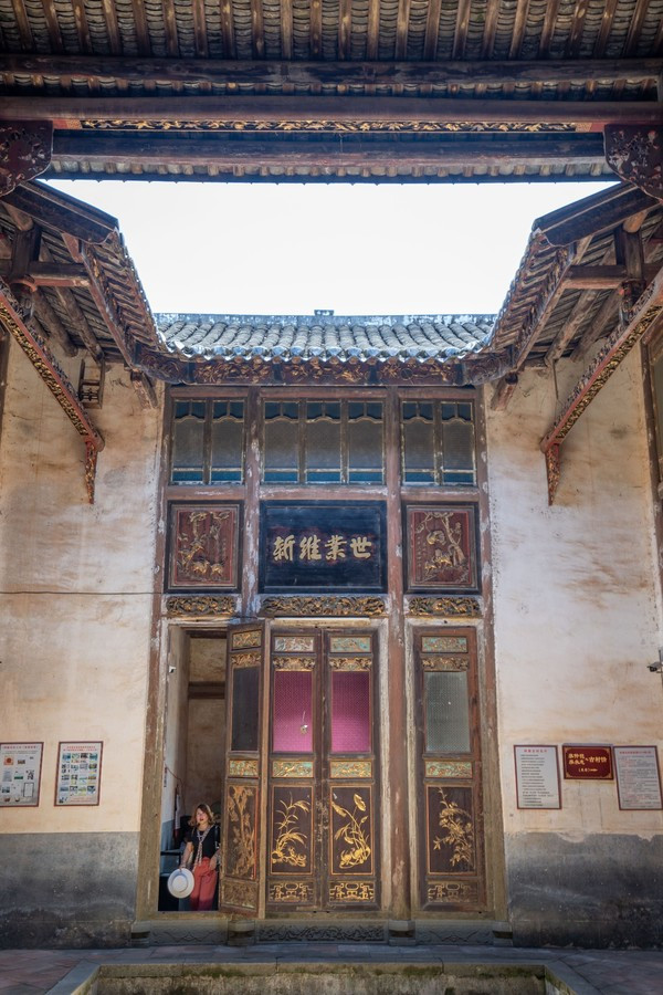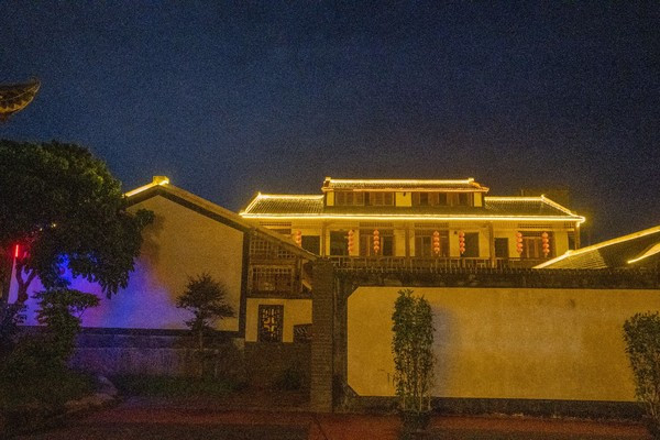 这究竟是一家怎么样的民宿呢?我们来到这里的时候已经是晚上了,坐的大巴车经过羊肠小道,才终于来到这里。一开始看到一个金碧辉煌的竟然是他的后门,一看就是以前的大户,人家来到这里正门也是气宇轩昂。