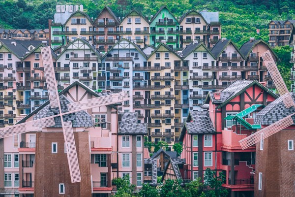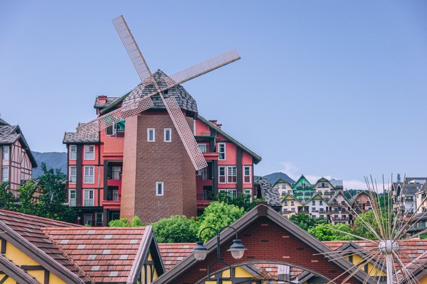 这里五颜六色的房屋真的是太可爱了,住在这里面有一种在童话世界里面苏醒的感觉,行走其间,在欧洲各国般的如画美景就能在这里看到,但我觉得整体偏向北欧多一点,因为这个色彩非常鲜明,而且有小风车。