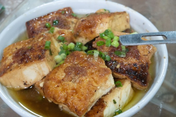 “酿豆腐”这道菜的传说还是野趣沟的许建生董事长讲给我们听得。这道菜源于北方的饺子,北方人移民来此,想吃思乡的饺子,因南方麦子少,就把豆腐当面皮,将肉馅放入切好块的豆腐中,上锅蒸熟,结果味道很好!