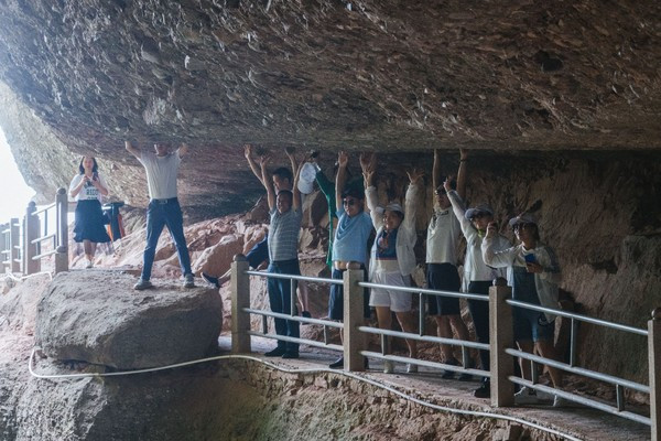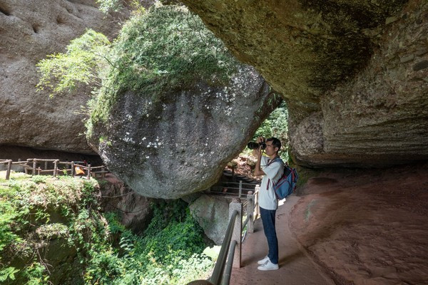 一线天去的道路又会通往来时的地方,在这里很多石头触手可及,很多人举起手一起拍一张合影,都是合适的。