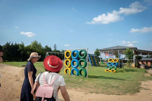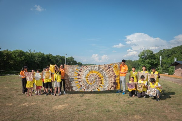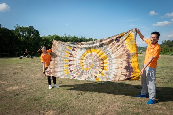 在这里还可以认识各种植物染料,最后我们还在草地上看见了一幅大家合力完成的超大扎染图案,在四季风庄园还有一些住宿场所
