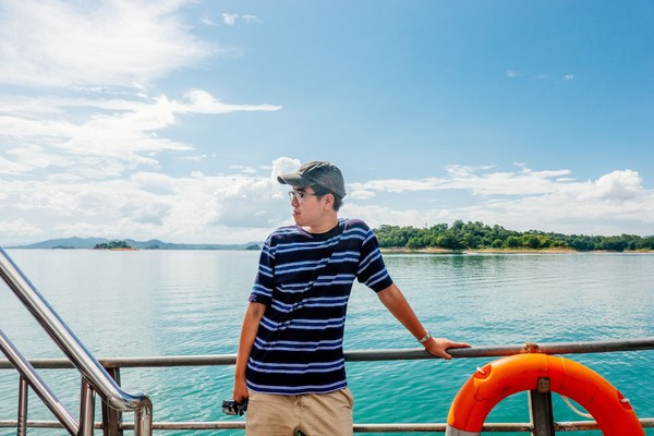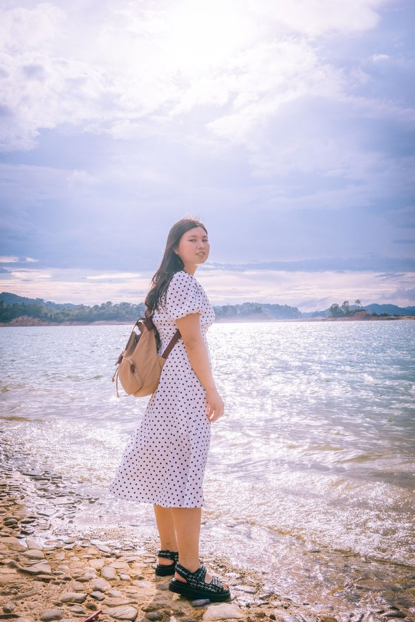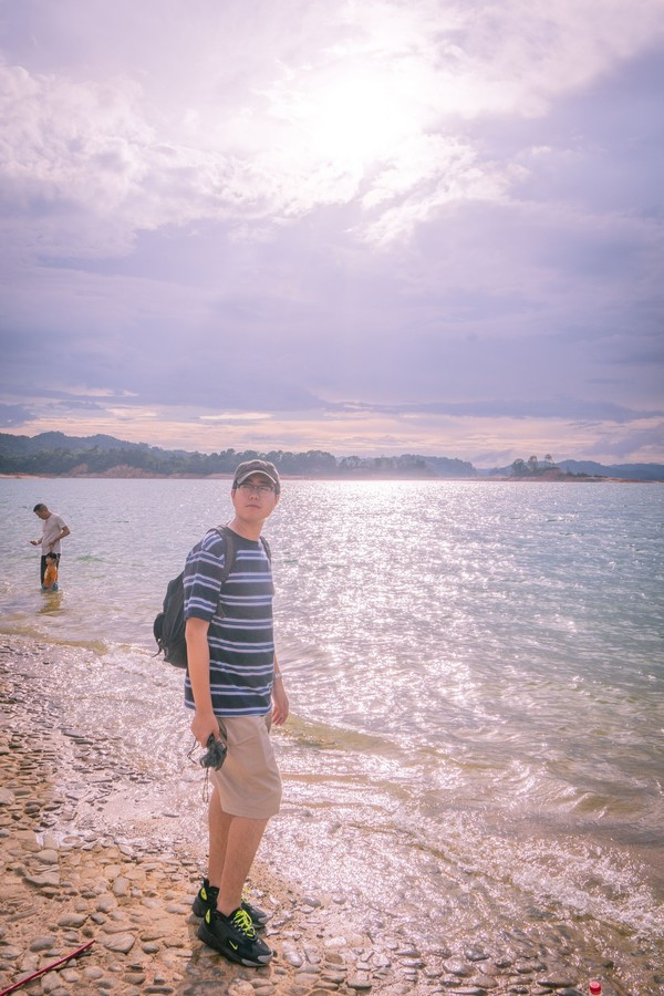 温度保存在19-23之间,非常的清凉,行走在堤坝上,和远处的山和湖合影,超级棒!