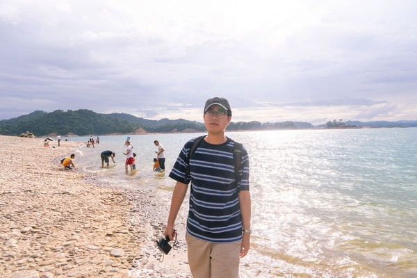 脚下涛声阵阵,拍打着心扉,尽情吸吮着风里甜甜的空气,舒畅开怀,宛如痛饮了一杯客家酿酒,甜甜的微醉,如跳跃的精灵飘忽其中。