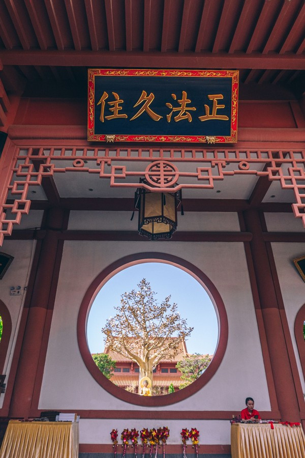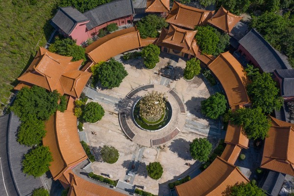 其实在这里还弘扬佛教文化,还是整个世界唯一一个客家式围屋寺庙,全部都是圆形的。寺庙将客家围屋的模式复制了,打造出奇特的寺庙~