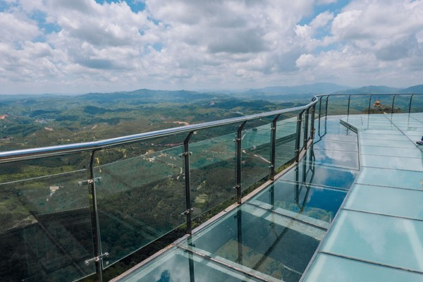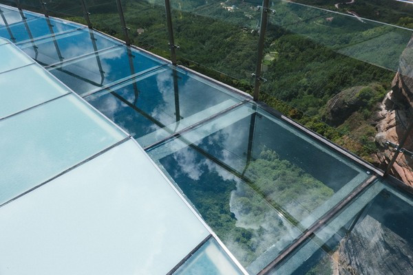 在霍山还有一段让人惊奇的玻璃桥,走上这透明的玻璃,山脚下的美景尽收眼底。