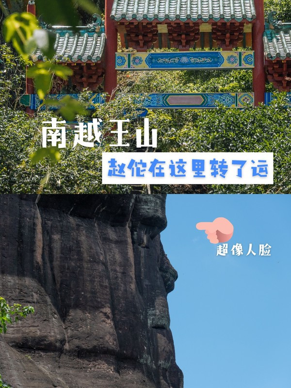 南越王山,河源越王山旅游风景区:位于河源市江东新区古竹镇的东江河畔,方圆两平方公里。相传越王山是因西汉南越武王赵佗登高面壁铭志称王而得名千年的古寨门、完好的越王井、越王榻。