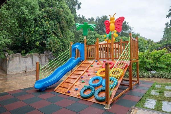 叶园温泉池区内拥有68个大小各异的温泉池,还有别具特色的神秘神山溶洞区、水疗SPA池、客家草药池、亲亲鱼疗池等。整个池区分布在青山、翠竹环抱的自然美景之中,充分感受客家生态温泉的魅力。在氤氲的温泉中