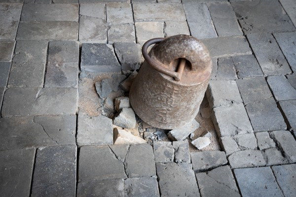 把楼的朝向简单的坐北朝南。就避免了洪水的正面冲击。其他的防洪设施呢,洪水来袭的时候,它又是怎样的?区别于。首先屋檐上的水会从天井汇聚而下,落入下方的水池中,再通过排水孔排到屋外。其次,这里还有下水管道,它以类似竹子的形状藏在建筑柱子里,美观又实用。