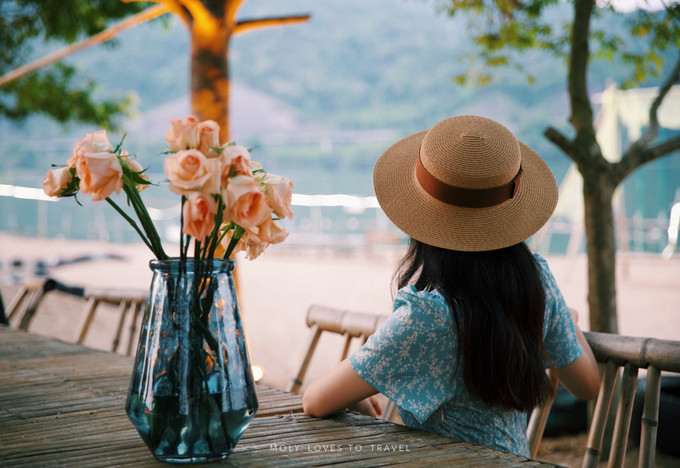 这次旅行,我们住在东江边的一家很有特色的民宿,名叫“竹里馆”。民宿前面就是东江,对面是京九铁路线,可以坐在树下的竹制桌,看着眼前清澈的东江水,还有来往的列车。