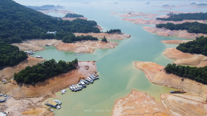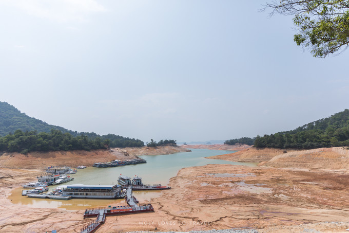 因为今年干旱严重,导致水位下降了很多。以前淹没的一些村庄,慢慢露出水面,有些曾经住在那里的村民,还专程赶来看自己家的房子。水库水位正常时,万绿湖特别的美!等到水位正常时,我们还想再回来旅游。