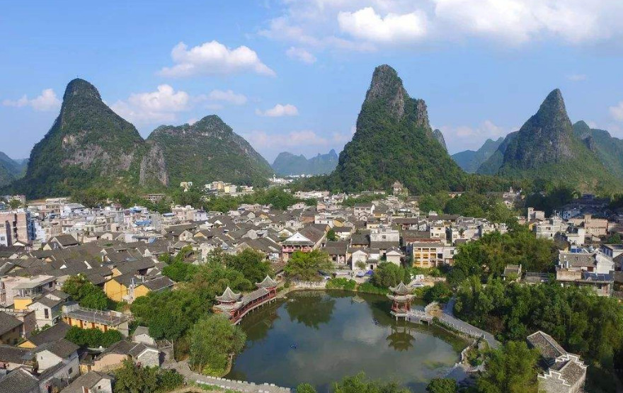 这里是典型的喀斯特地貌,山清水秀,岩洞暗河幽深,亭台楼阁,深山寺观,天人合一,是一个天然的山水园林古镇。