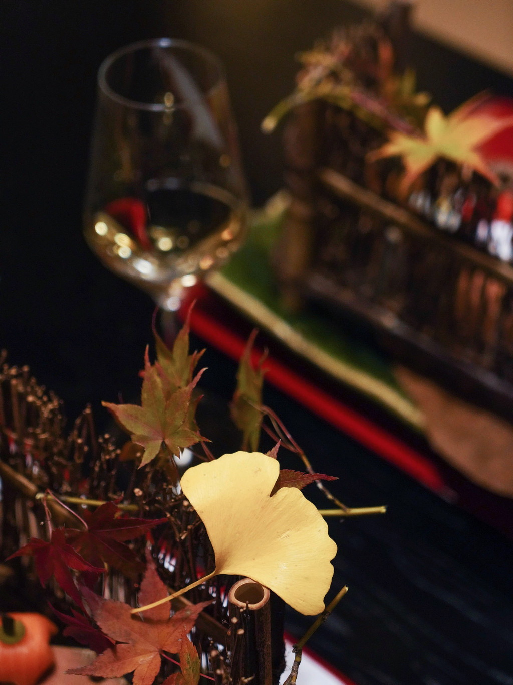 值得一提的是这个秋天庭院摆盘点缀用的松叶和银杏都来自广岛县的万愿寺,连这些细节都有很好的寓意。