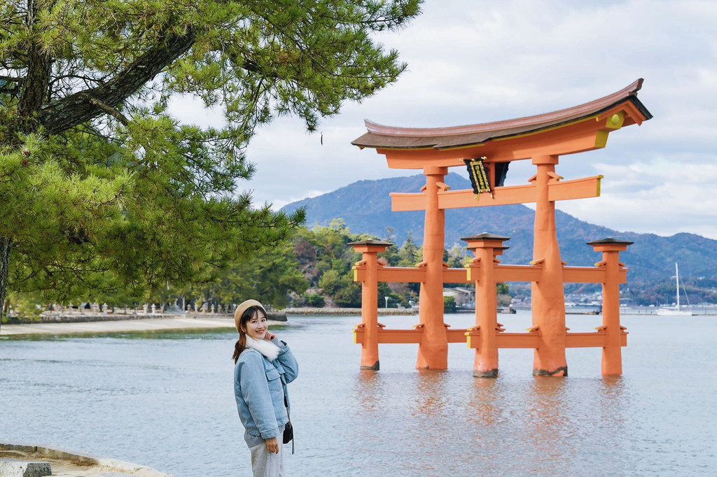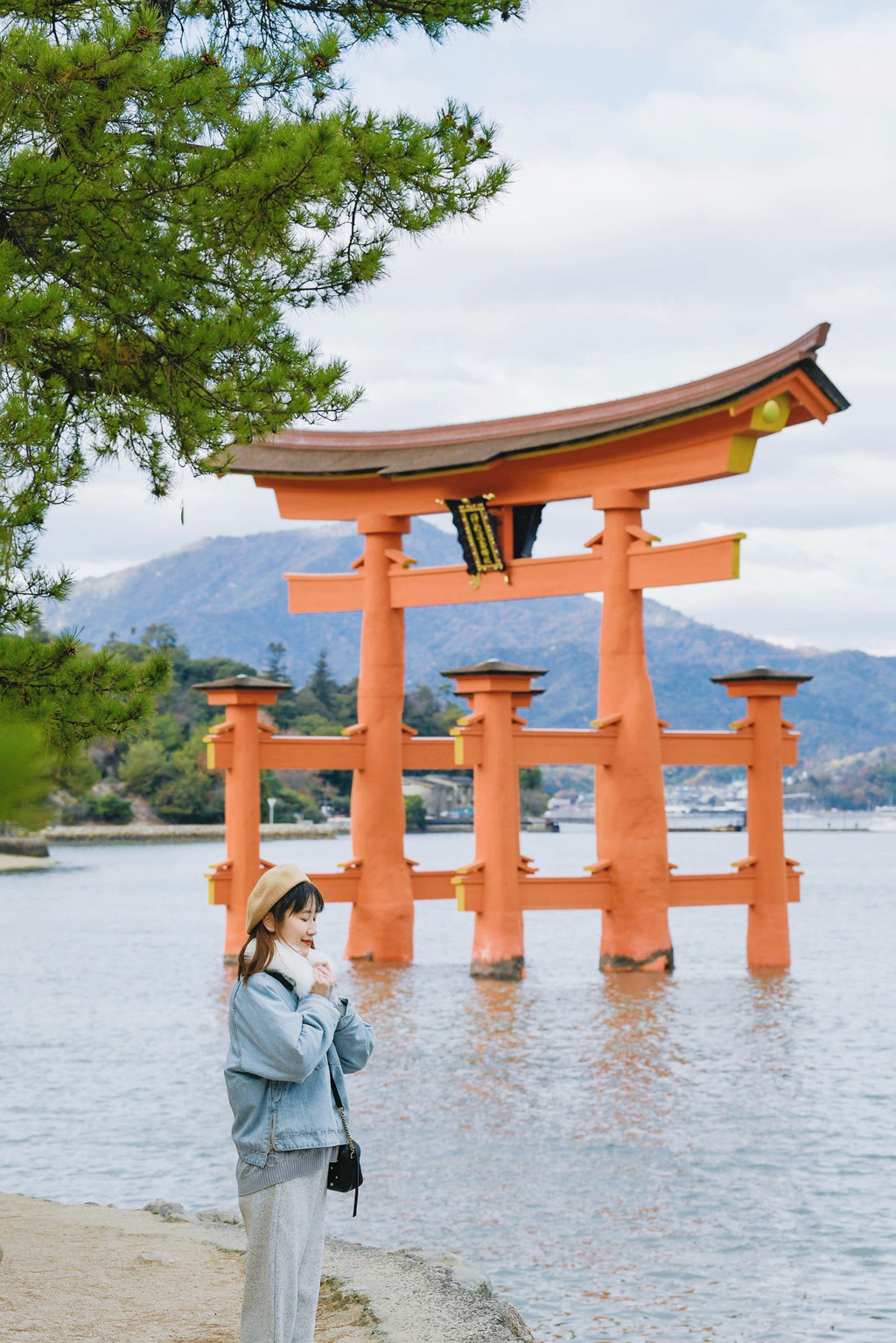 在广岛站搭乘山阳本线约35分钟到达终点站“宫岛口”,再转乘轮渡前往宫岛港,约15分钟可到达宫岛。在轮渡上可以看到矗立在海上的严岛神社大鸟居,和它身后的严岛神社构成了宫岛最靓丽的一道风景线。