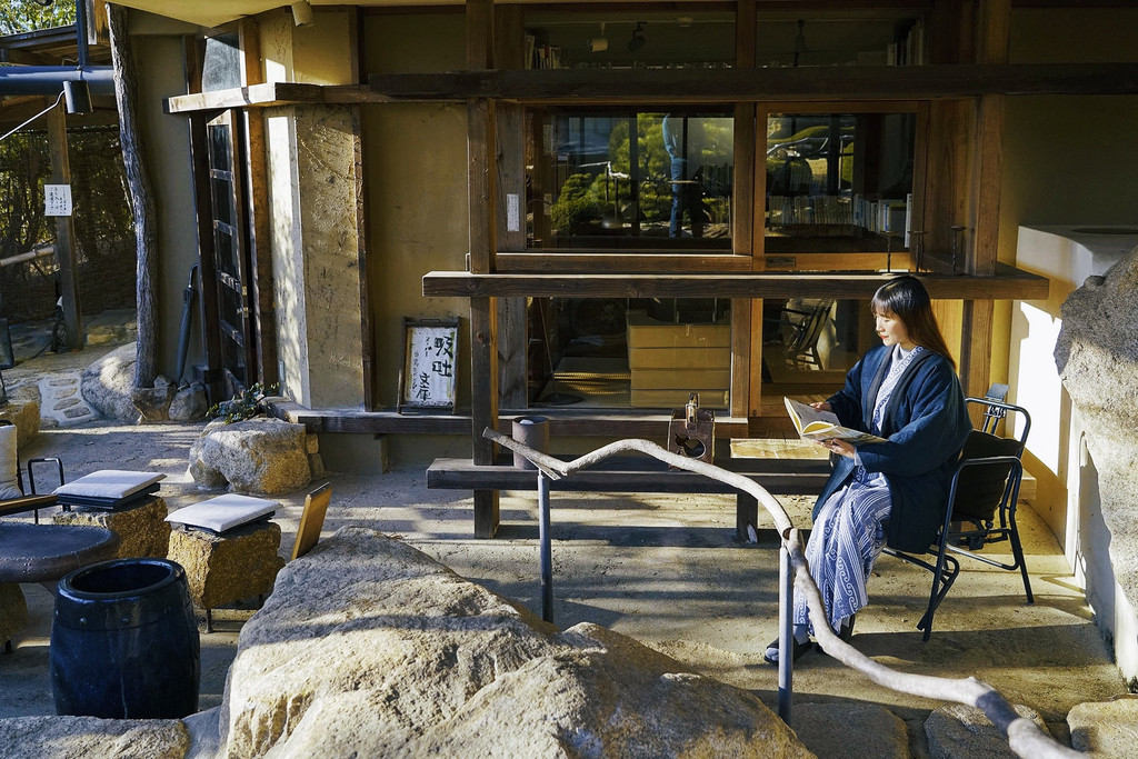 在庭院散步,可以去庭院一角世外桃源般的图书室“吸吐文库”坐坐,早上光线斜射进图书室,日剧buff叠满。
