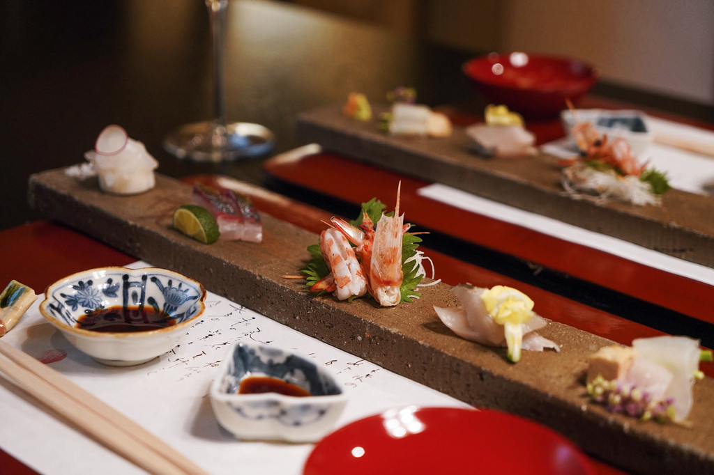 “造里”的摆盘非常特别,生鲜放在长条的备前烧瓷板上呈现我还是第一次见,柴烧器皿与两款青花染付蘸料碟搭配古朴雅致,其实上到第二道刺身拼盘时我就对厨师长产生了好奇,究竟是怎样的一位料理长这么注重食物和食器的结合,摆盘极具创意。后来问了工作人员才知道,厨师长对艺术有很深的造诣,从18岁就开始了漫长的修行之旅,期间接触到了很多艺术,29岁时被选为厨师,擅长以日本传统文化的艺术形式来呈现美食,收获了众多粉丝和回头客,由此可见,是一位天赋异禀又特别踏实努力的料理长。