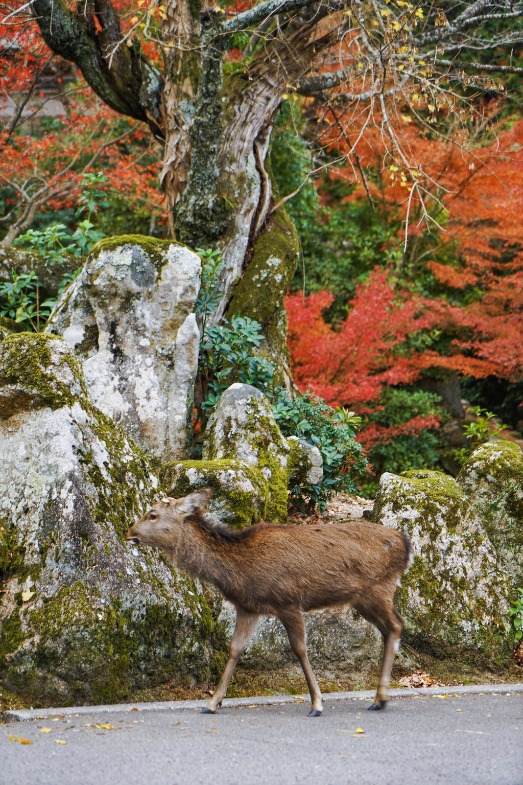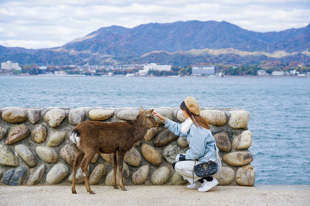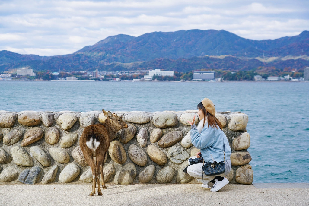 宫岛也有小鹿,只是数量没有奈良那么多,而且宫岛小鹿比奈良小鹿温柔太多啦,有点慢热,对游客十分友好。