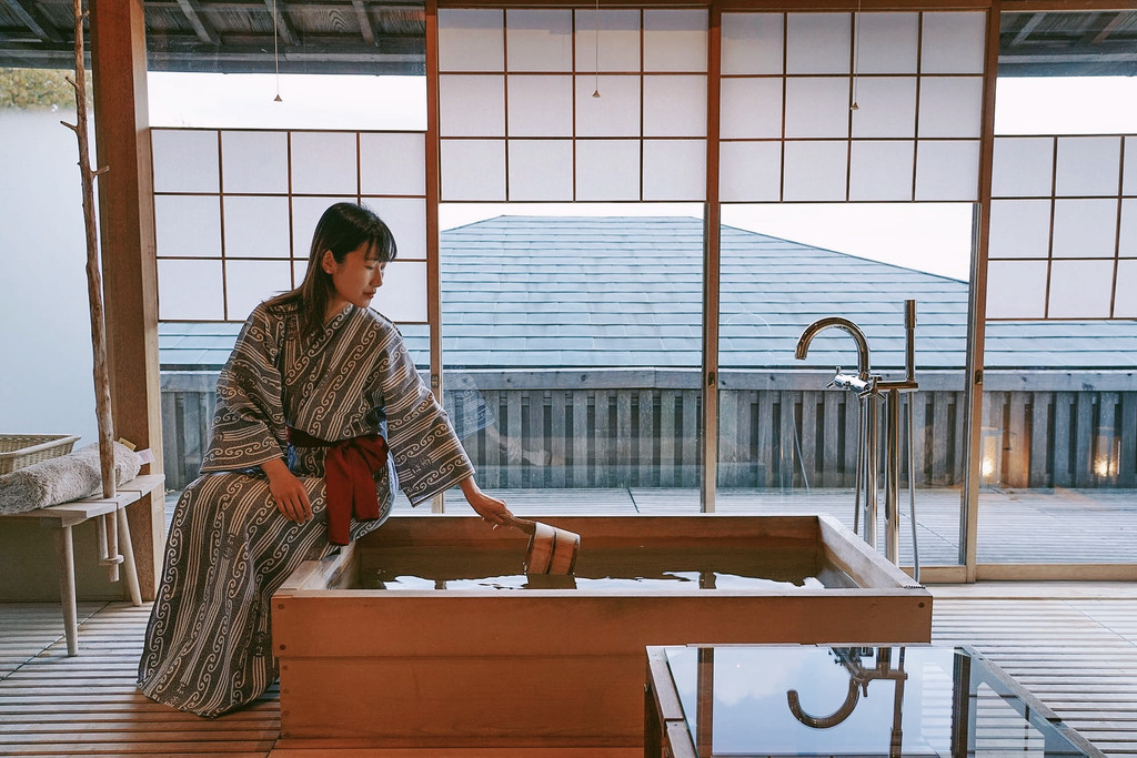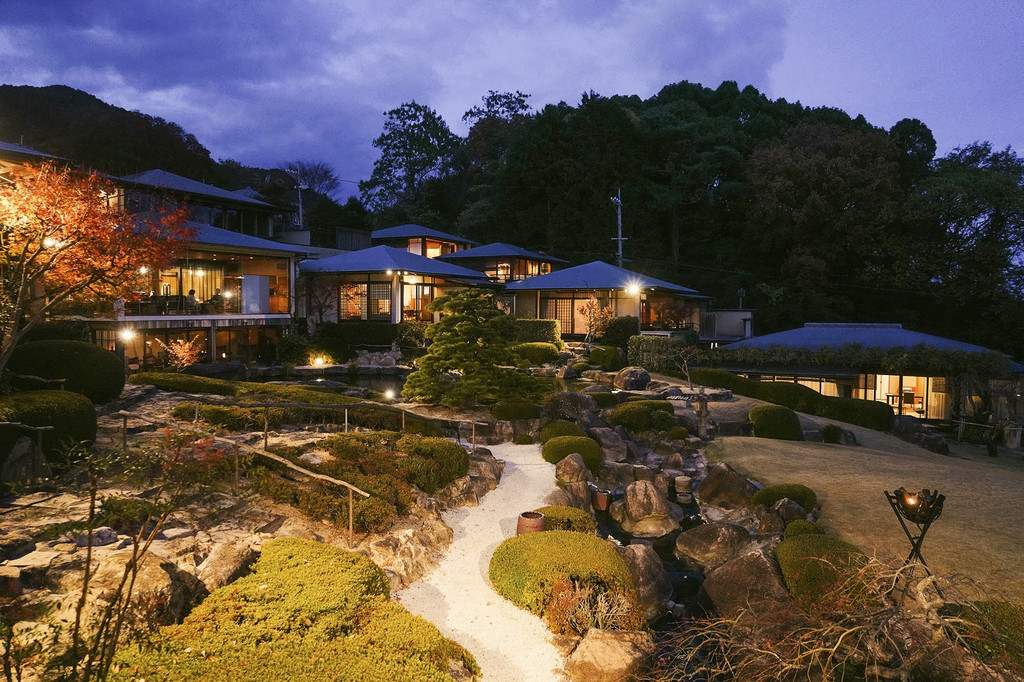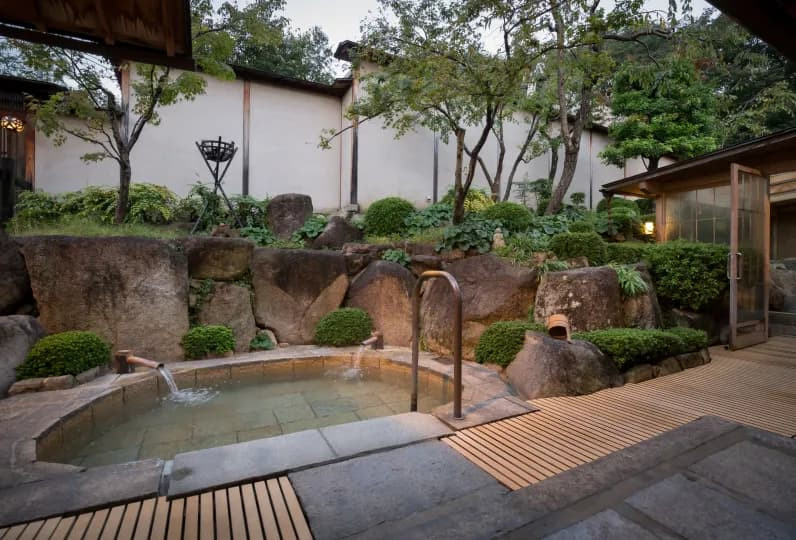 吃完饭休息一会儿就可以去泡温泉了,半露天的池子大一些,露天的池子会小一些,但都是庭院景观。(图片来自于官网)